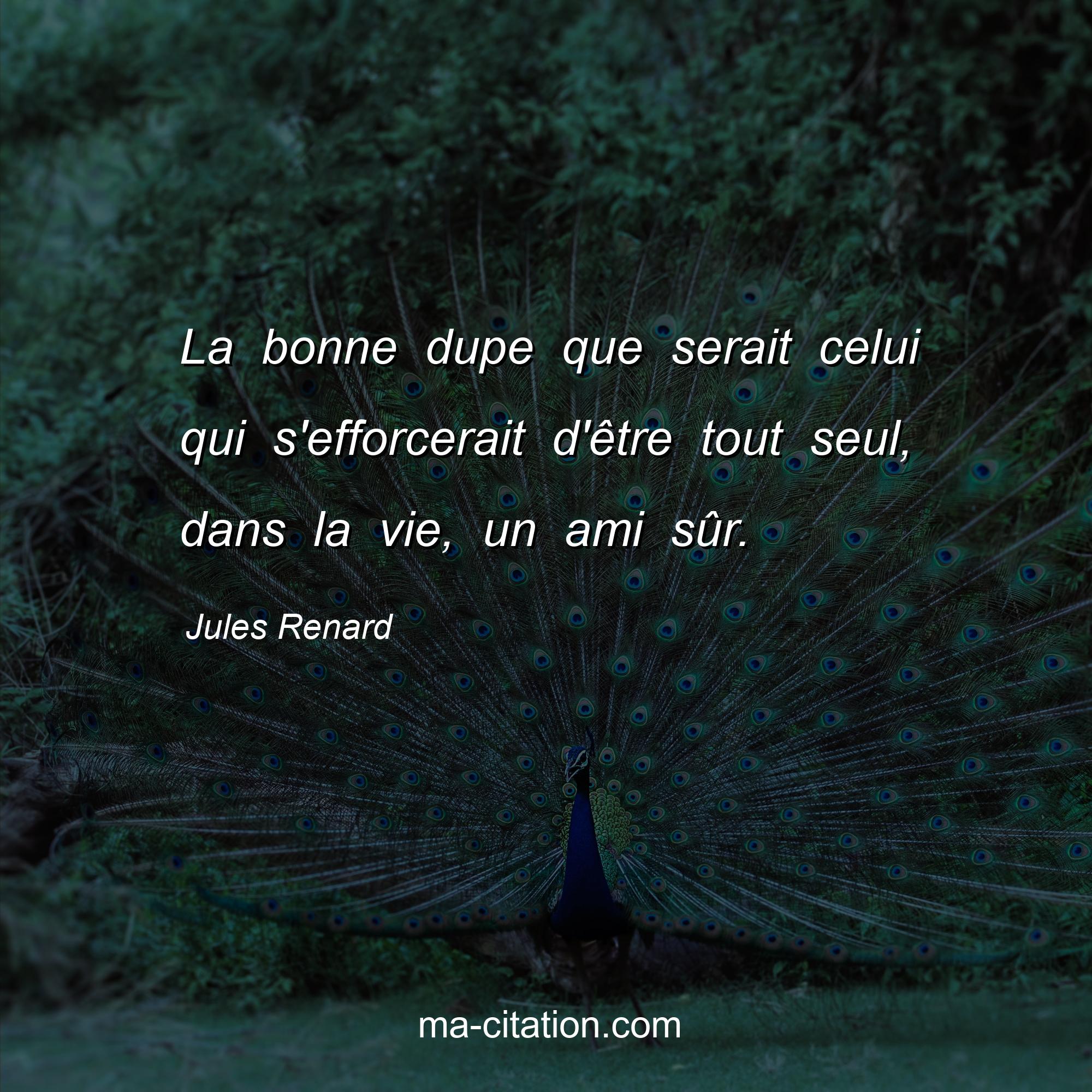 Citation sur la vie de Jules Renard :La bonne dupe que serait celui qui s'efforcerait d'être tout seul, dans la vie, un ami sûr.