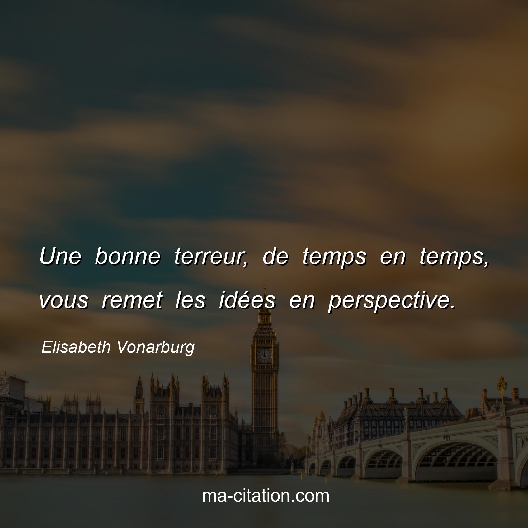 Elisabeth Vonarburg est l'auteur de la citation sur la vie "Une bonne terreur, de temps en temps, vous remet les idées en perspective.".