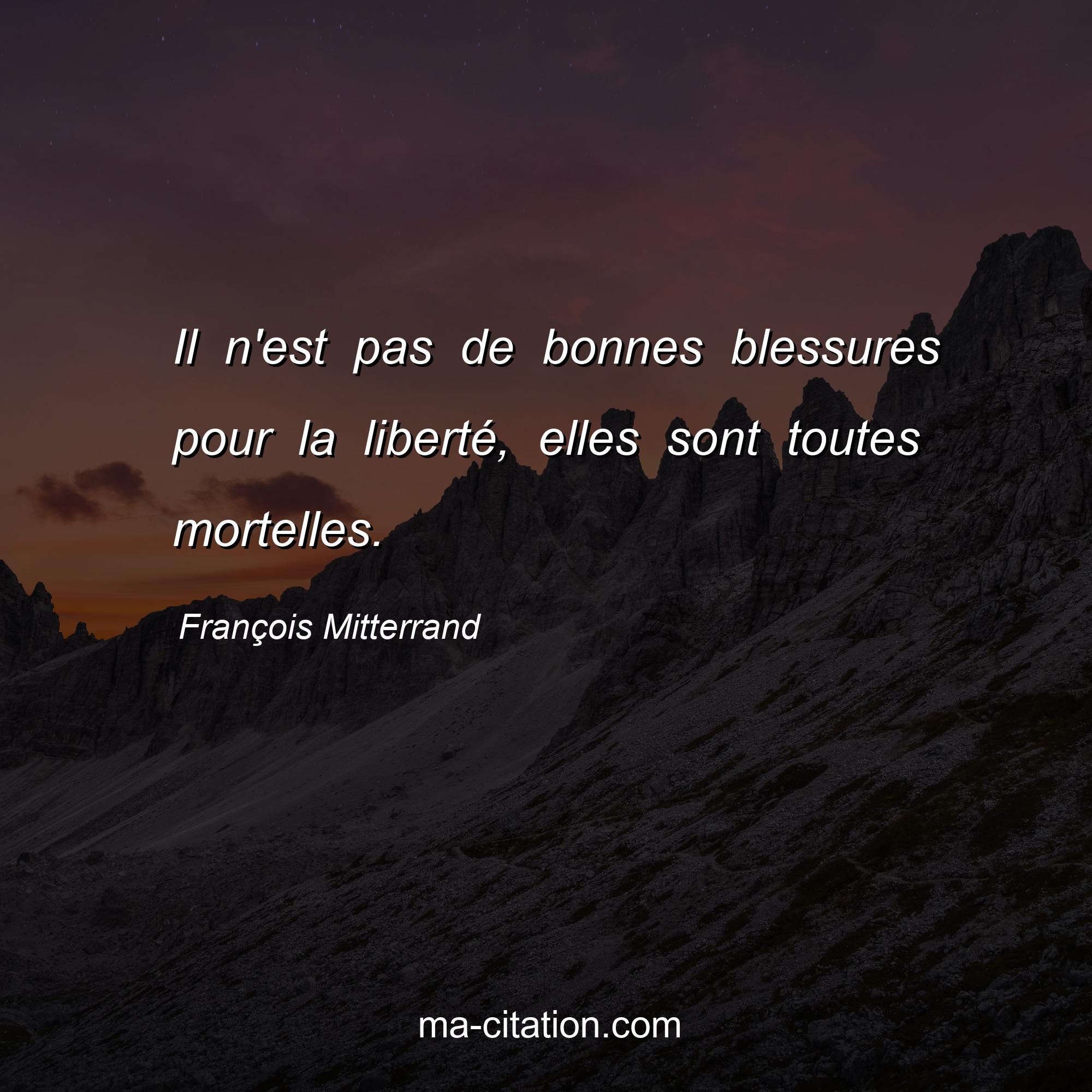 François Mitterrand est l'auteur de la citation sur la vie "Il n'est pas de bonnes blessures pour la liberté, elles sont toutes mortelles.".
