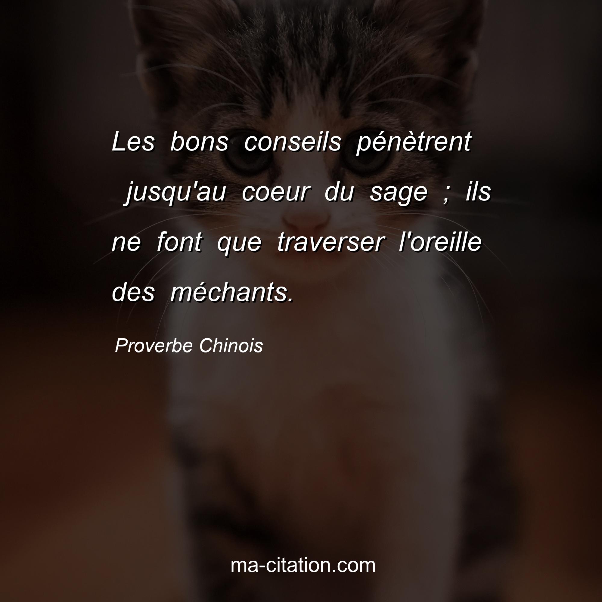 Proverbe Chinois sur la vie :Les bons conseils pénètrent jusqu'au coeur du sage ; ils ne font que traverser l'oreille des méchants.
