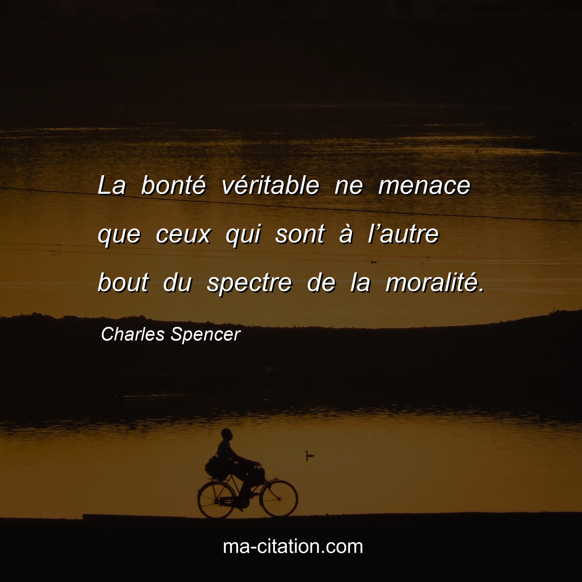 Citation sur la vie de Charles Spencer :La bonté véritable ne menace que ceux qui sont à l’autre bout du spectre de la moralité.