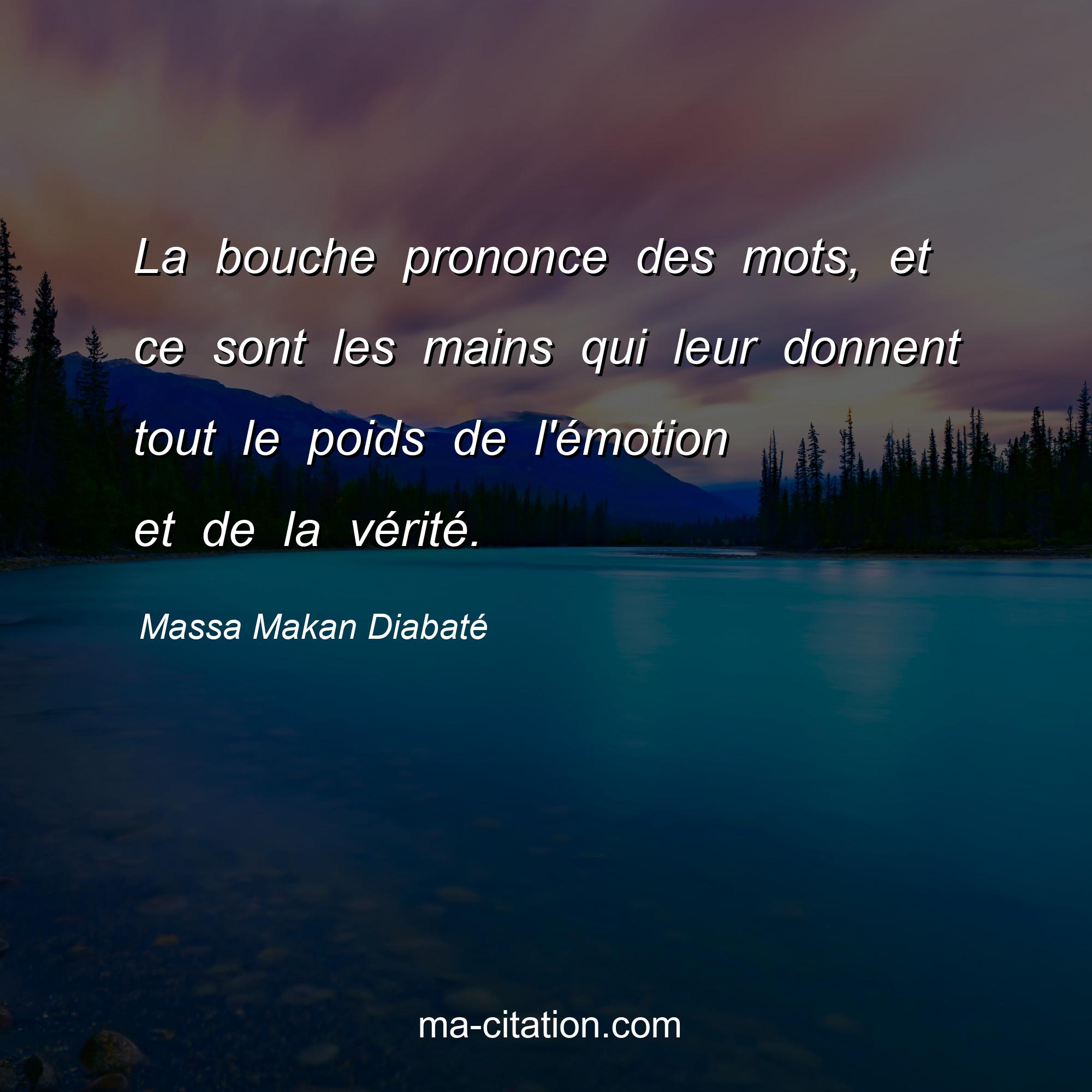 Citation sur la vie de Massa Makan Diabaté :La bouche prononce des mots, et ce sont les mains qui leur donnent tout le poids de l'émotion et de la vérité.
