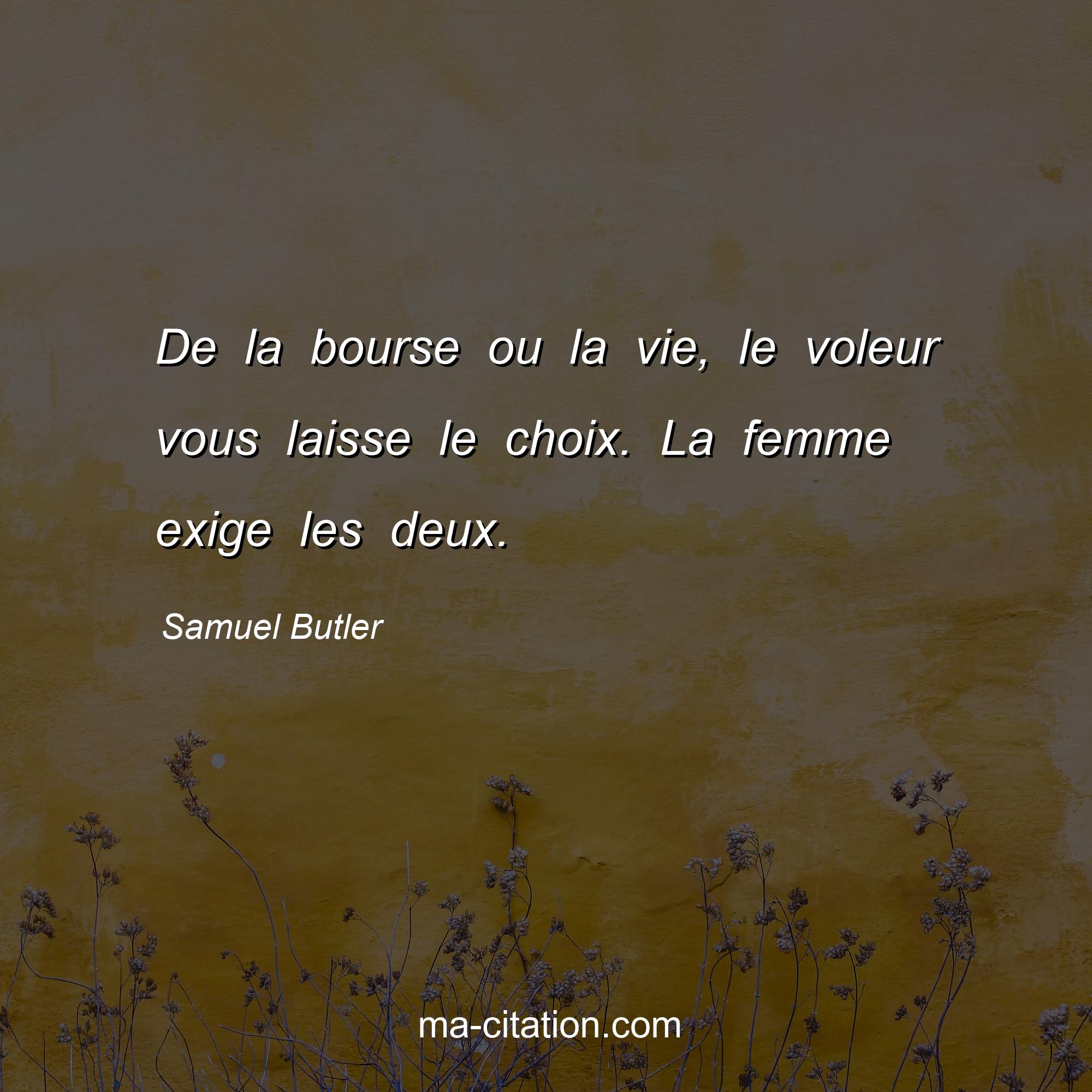 Citation sur la vie de Samuel Butler :De la bourse ou la vie, le voleur vous laisse le choix. La femme exige les deux.