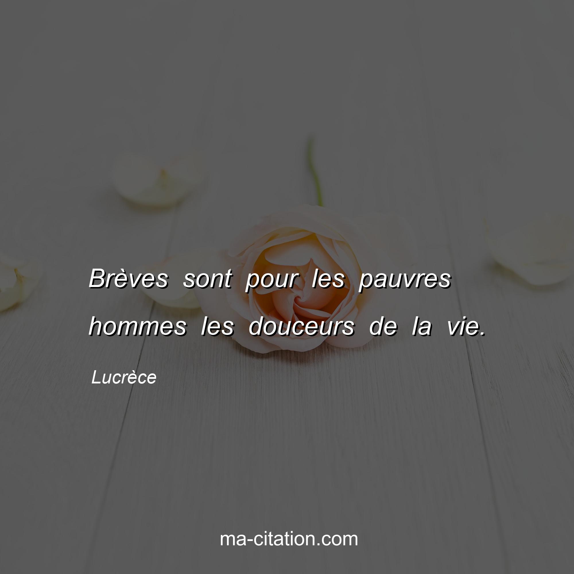 Citation sur la vie de Lucrèce :Brèves sont pour les pauvres hommes les douceurs de la vie.