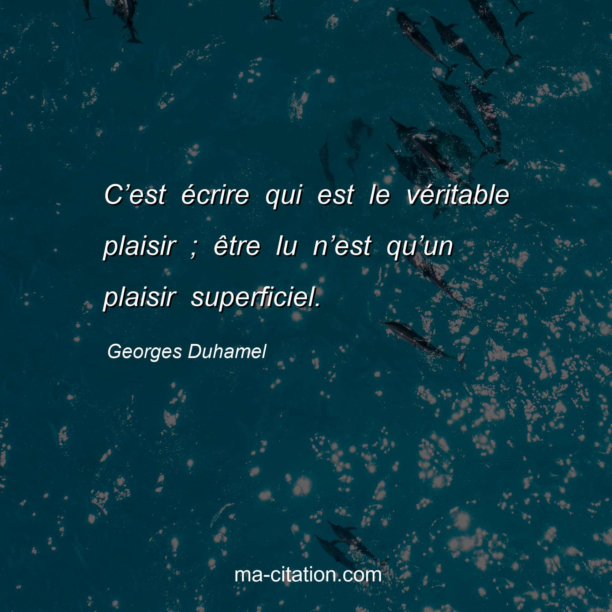 Georges Duhamel est l'auteur de la citation sur la vie "C’est écrire qui est le véritable plaisir ; être lu n’est qu’un plaisir superficiel.".