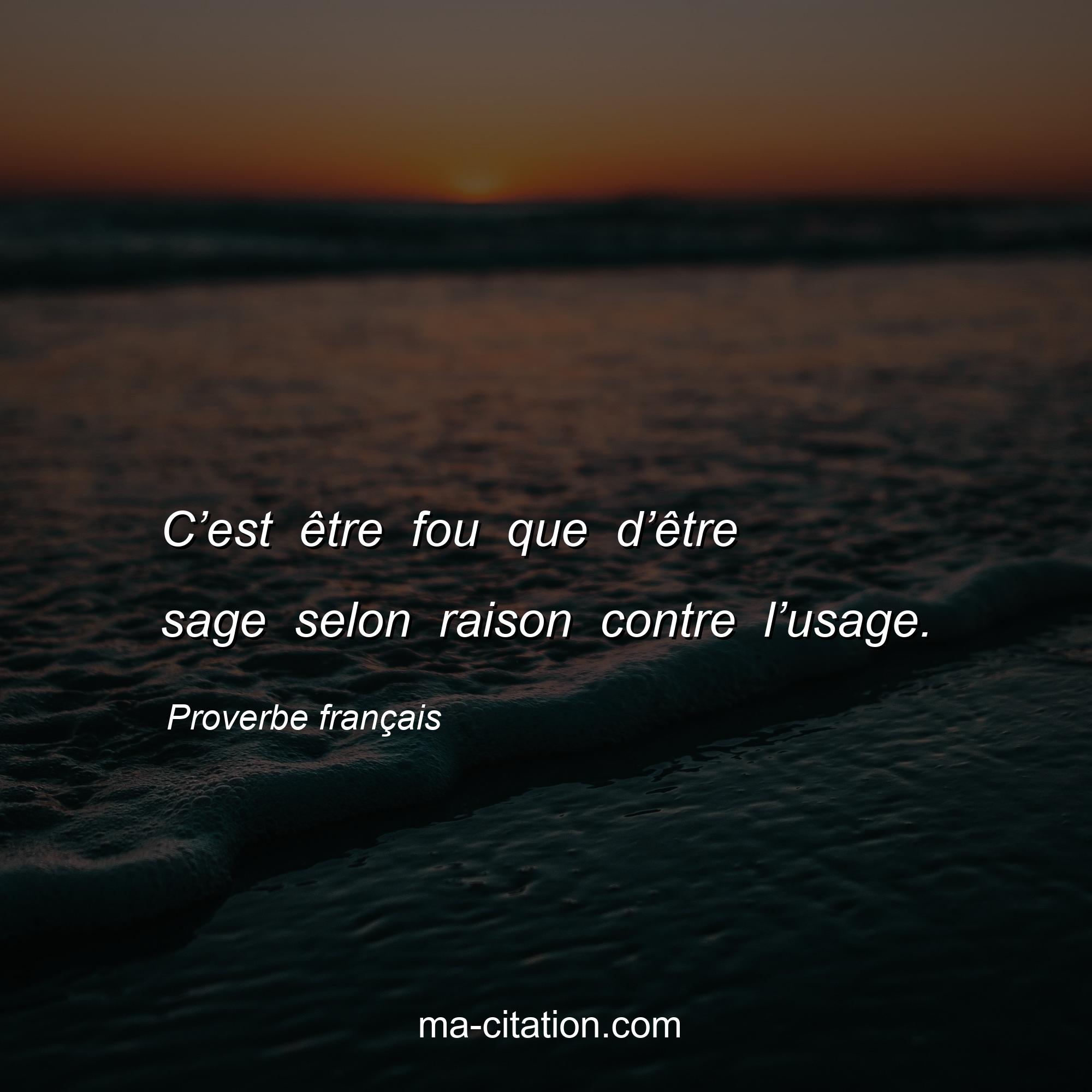 Proverbe français sur la vie :C’est être fou que d’être sage selon raison contre l’usage.