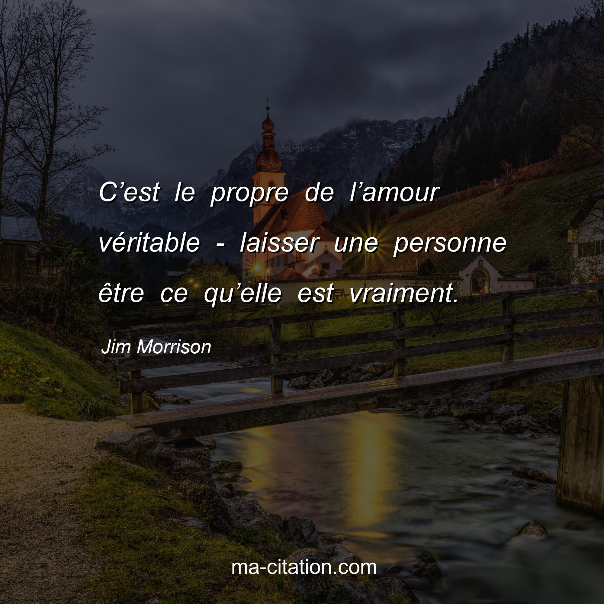 Citation sur la vie de Jim Morrison :C’est le propre de l’amour véritable - laisser une personne être ce qu’elle est vraiment.
