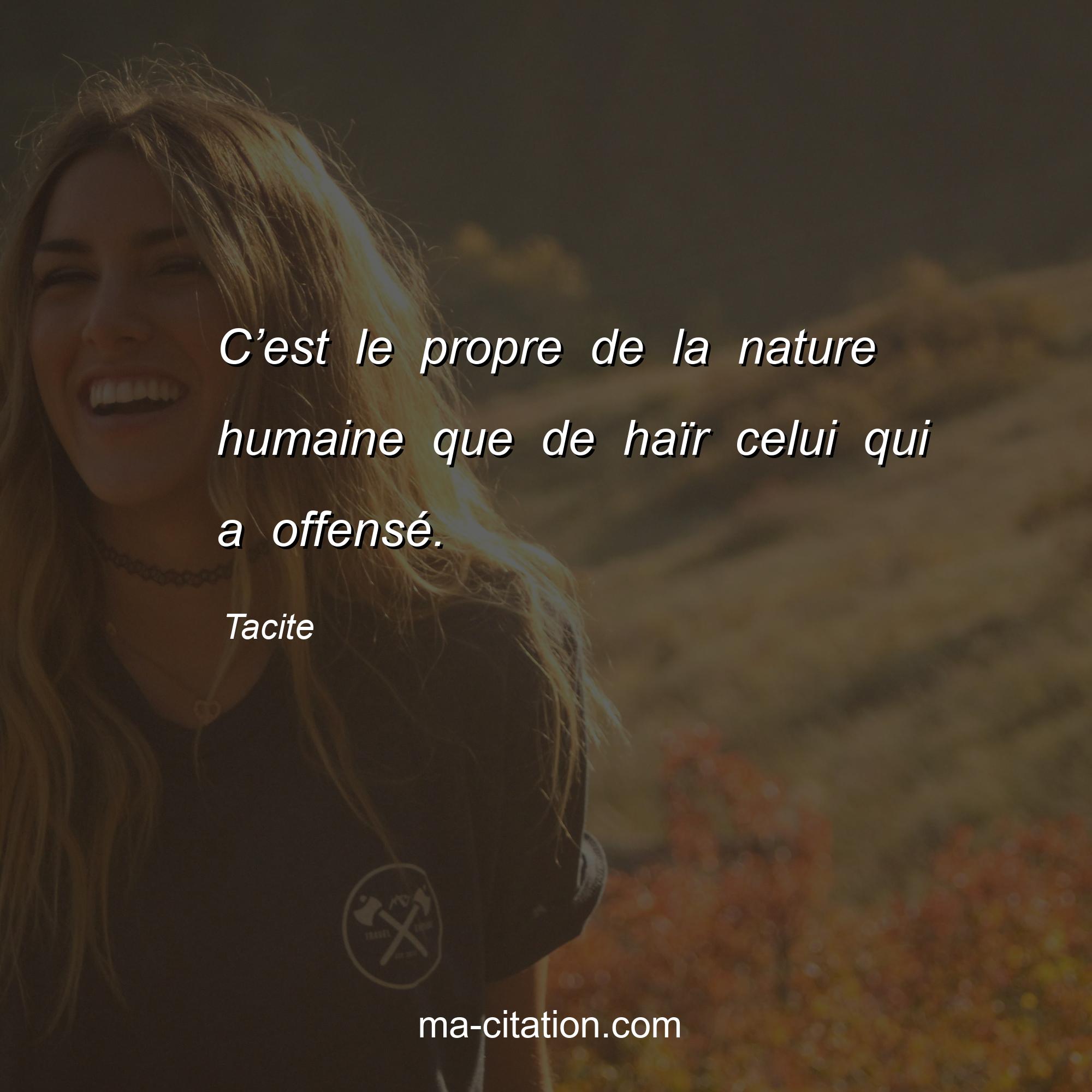 Citation sur la vie de Tacite :C’est le propre de la nature humaine que de haïr celui qui a offensé.