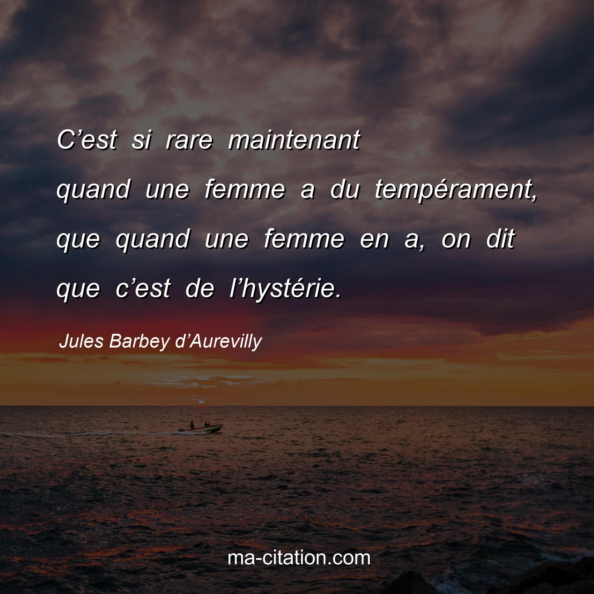 Citation sur la vie de Jules Barbey d’Aurevilly :C’est si rare maintenant quand une femme a du tempérament, que quand une femme en a, on dit que c’est de l’hystérie.