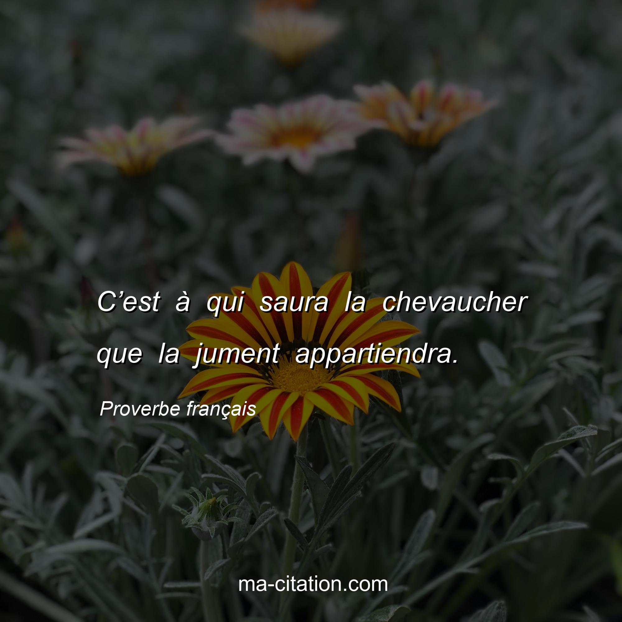 Proverbe français sur la vie :C’est à qui saura la chevaucher que la jument appartiendra.