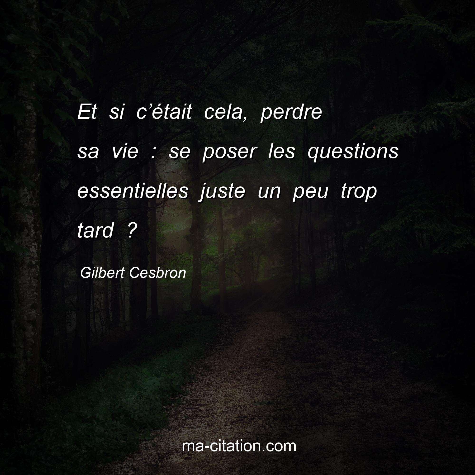 Citation sur la vie de Gilbert Cesbron :Et si c’était cela, perdre sa vie : se poser les questions essentielles juste un peu trop tard ?