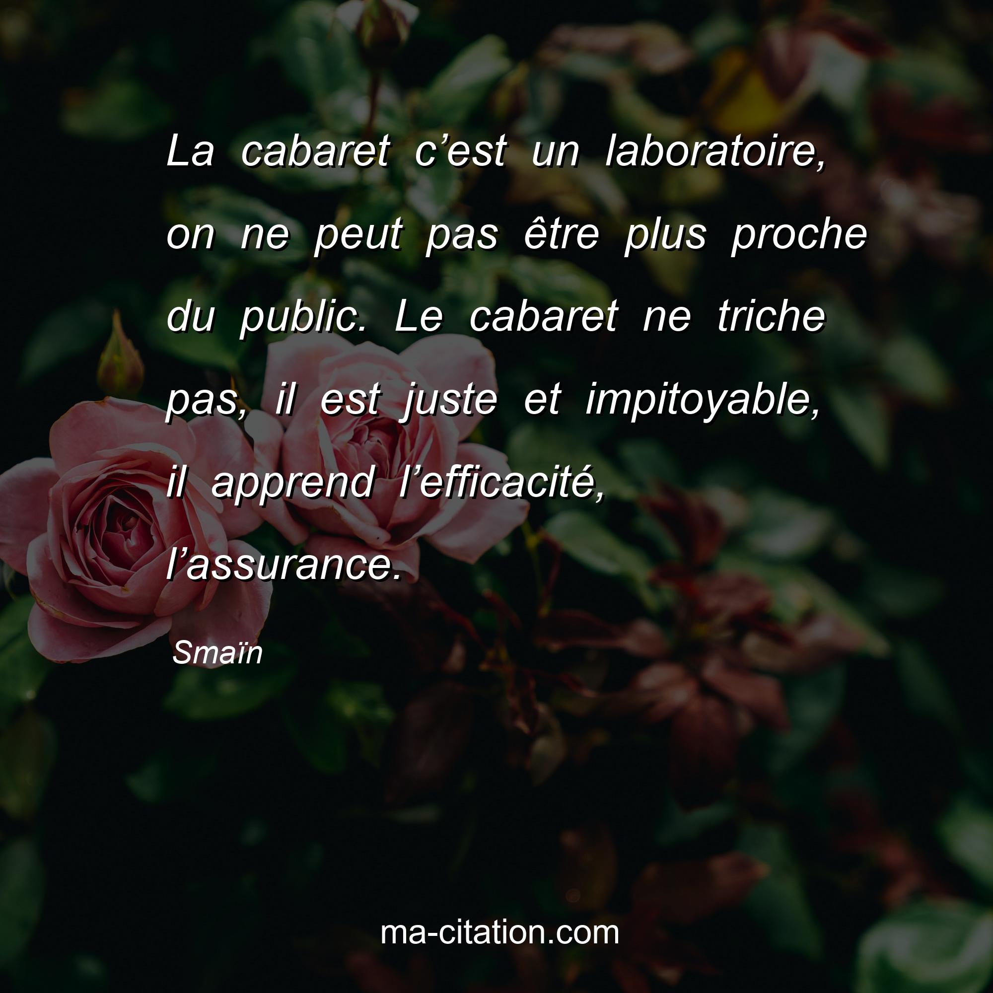 Citation sur la vie de Smaïn :La cabaret c’est un laboratoire, on ne peut pas être plus proche du public. Le cabaret ne triche pas, il est juste et impitoyable, il apprend l’efficacité, l’assurance.