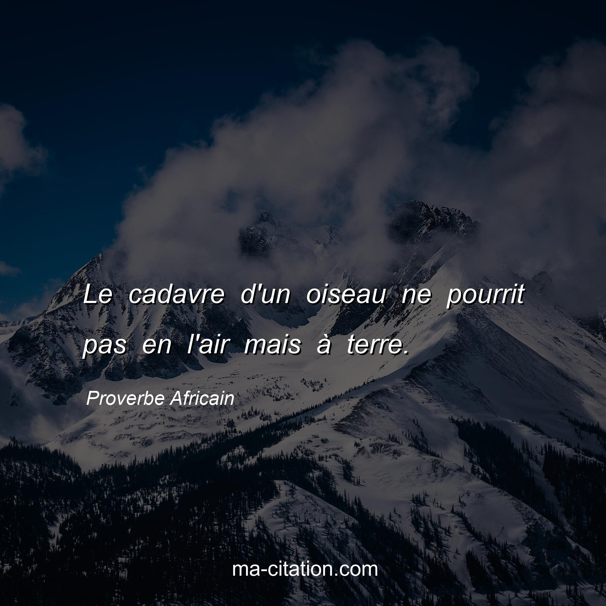 Proverbe Africain sur la vie :Le cadavre d'un oiseau ne pourrit pas en l'air mais à terre.