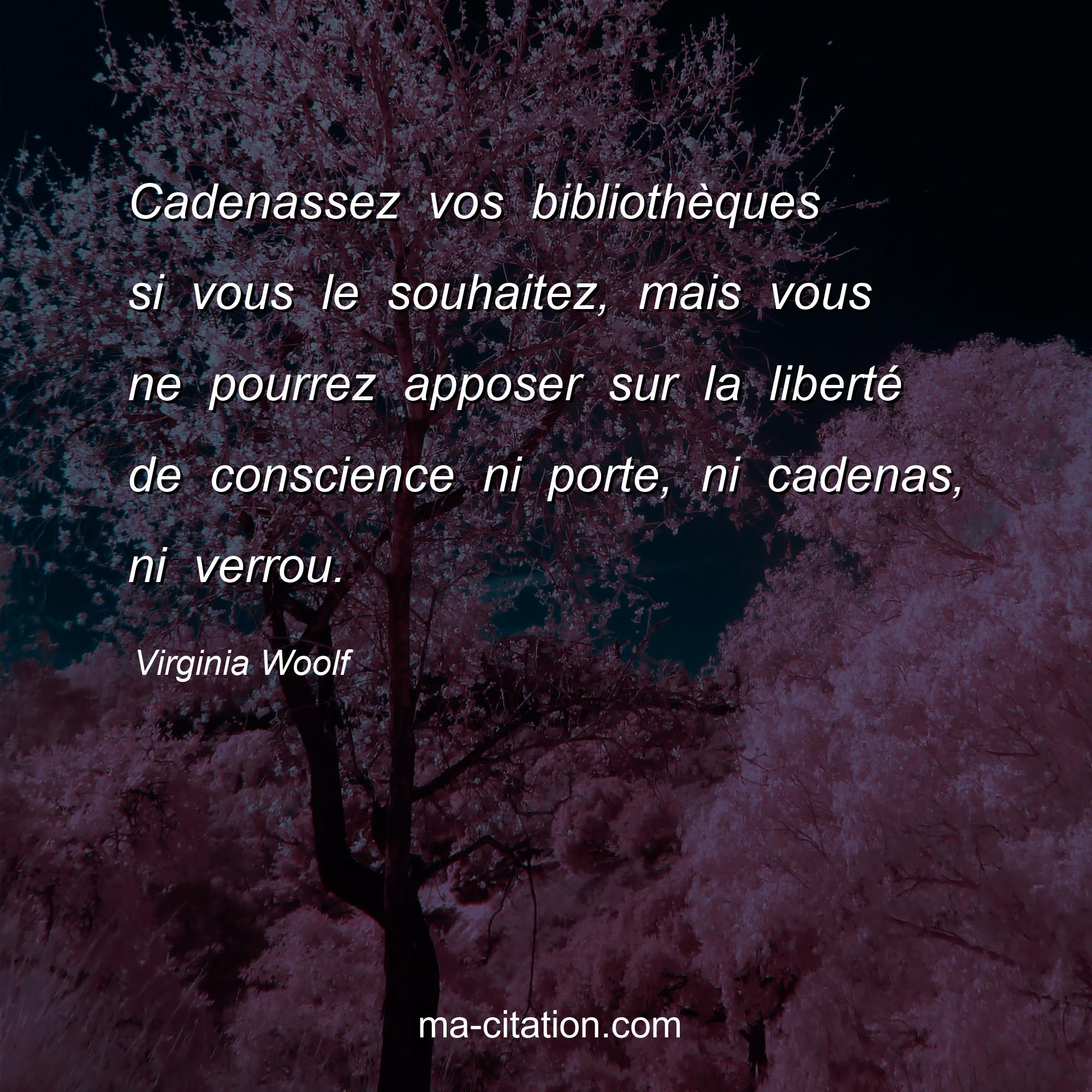 Citation sur la vie de Virginia Woolf :Cadenassez vos bibliothèques si vous le souhaitez, mais vous ne pourrez apposer sur la liberté de conscience ni porte, ni cadenas, ni verrou.