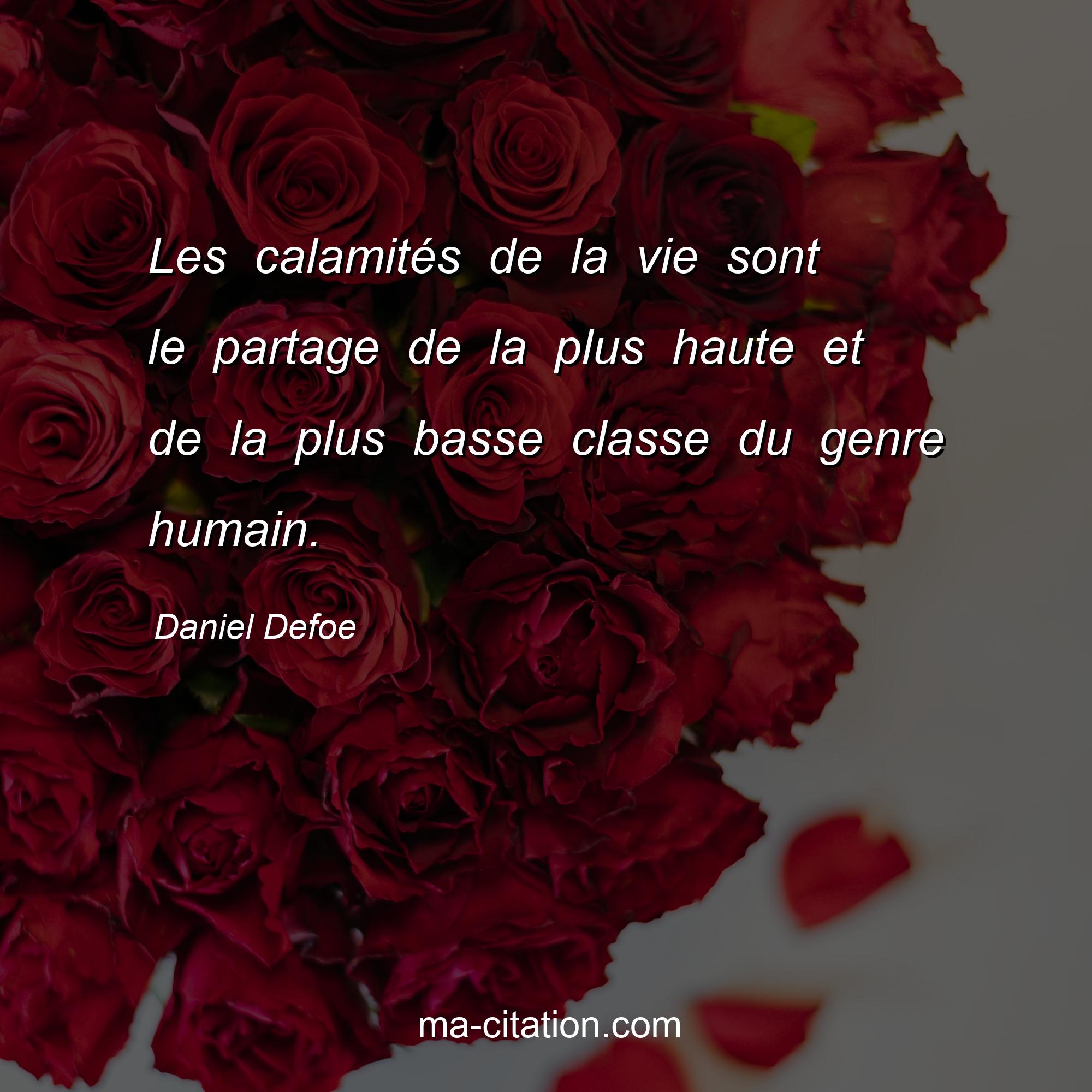 Citation sur la vie de Daniel Defoe :Les calamités de la vie sont le partage de la plus haute et de la plus basse classe du genre humain.