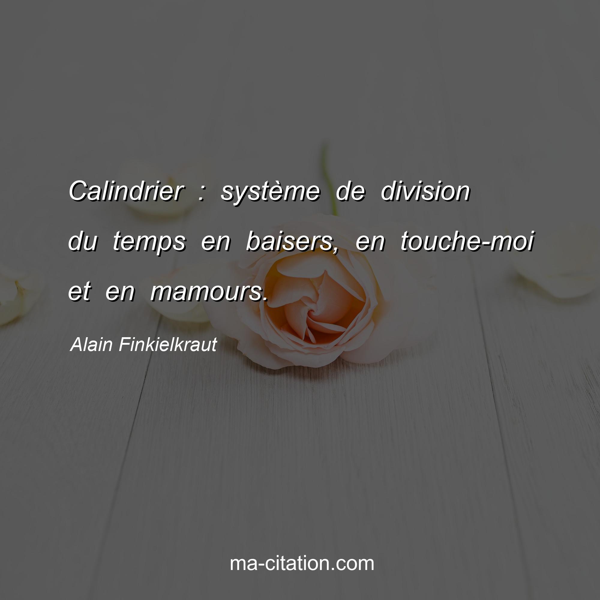 Citation sur la vie d'Alain Finkielkraut :Calindrier : système de division du temps en baisers, en touche-moi et en mamours.