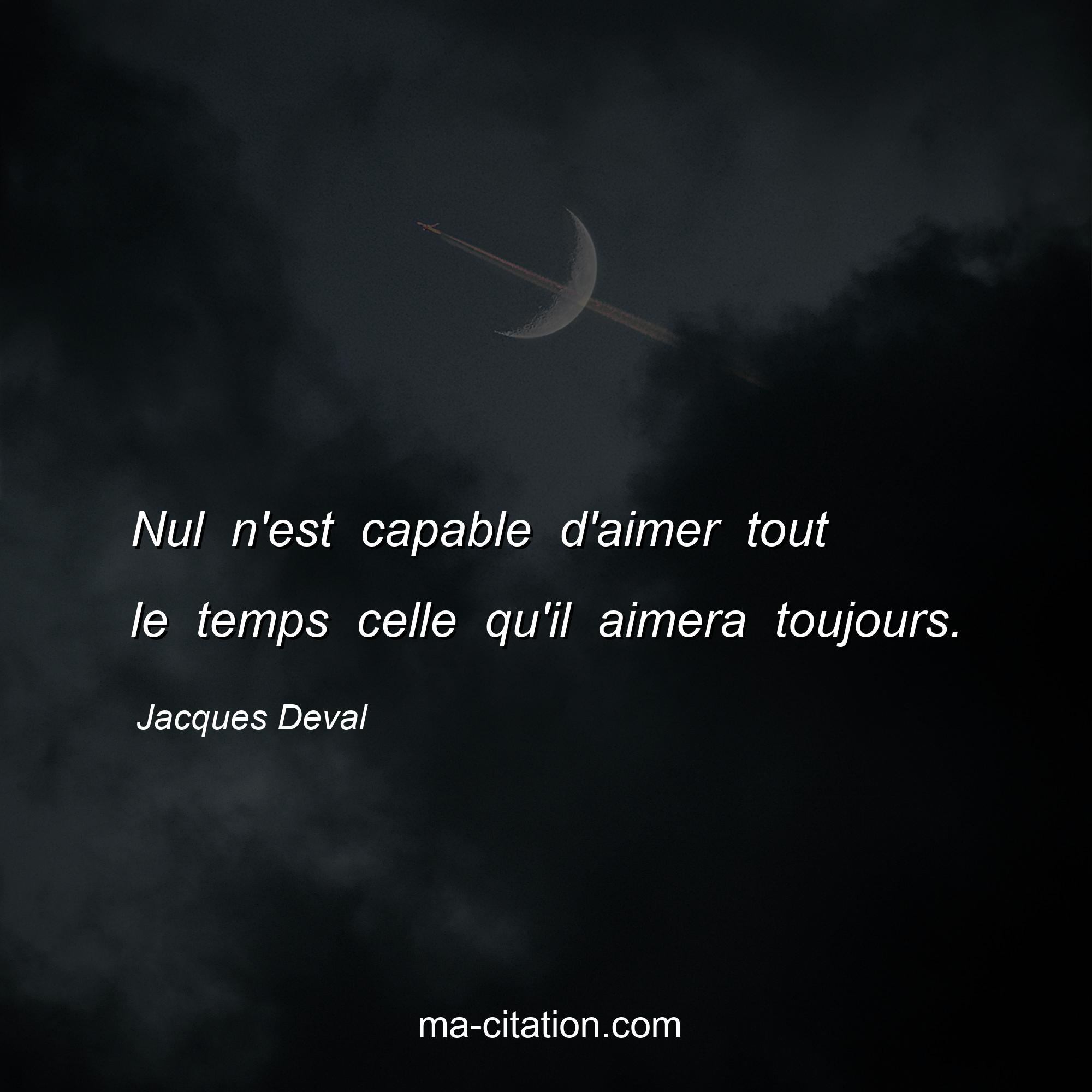 Citation sur la vie de Jacques Deval :Nul n'est capable d'aimer tout le temps celle qu'il aimera toujours.