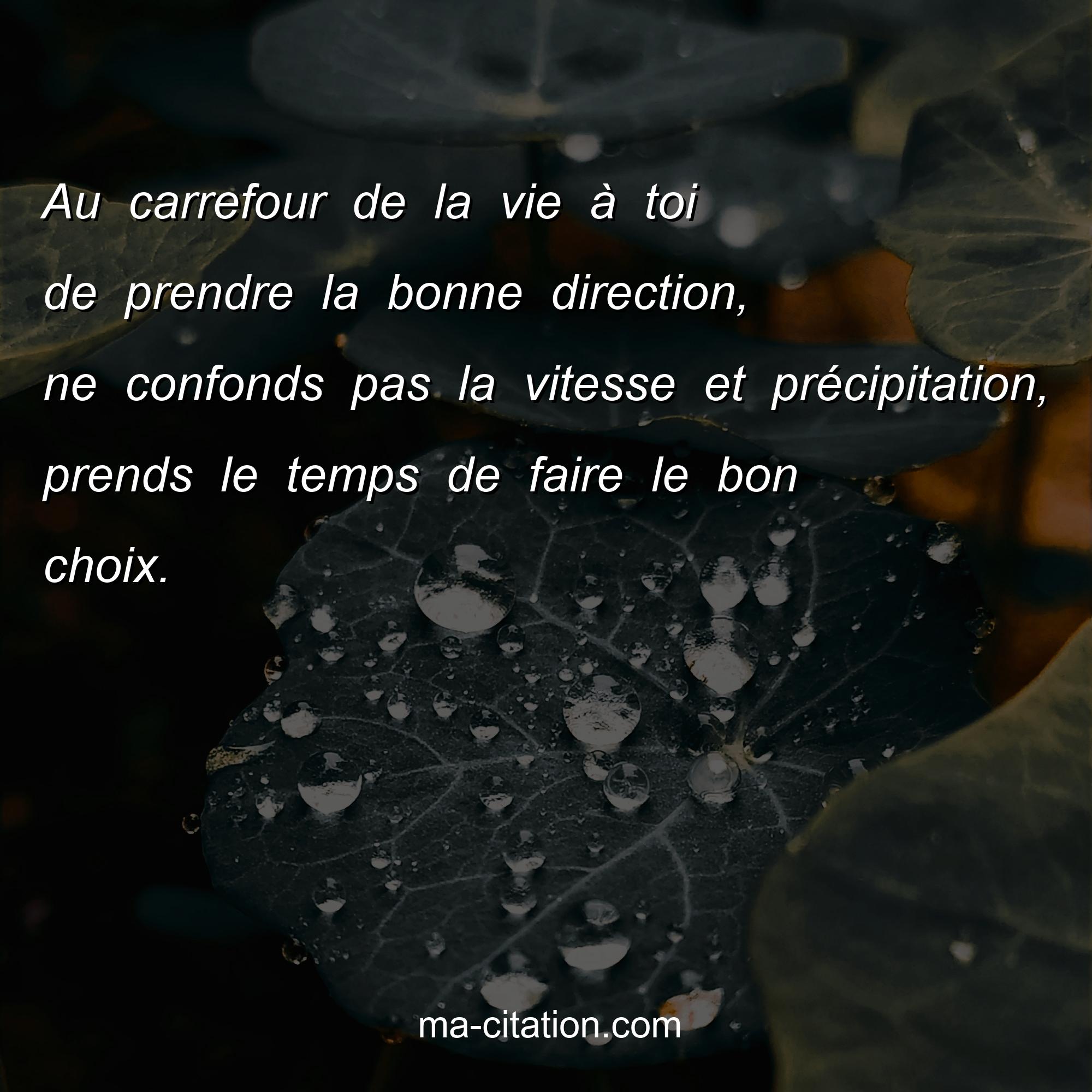Au carrefour de la vie à toi de prendre la bonne direction, ne confonds pas la vitesse et précipitation, prends le temps de faire le bon choix.