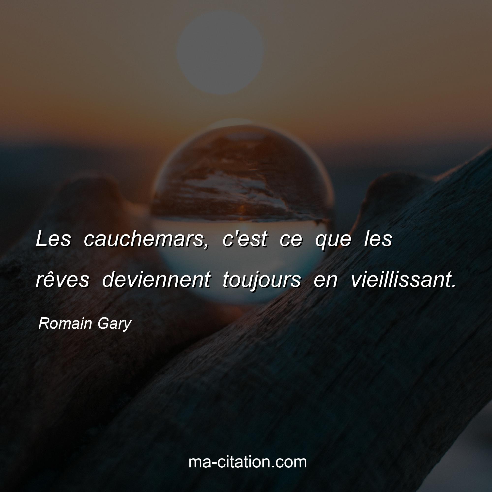 Citation sur la vie de Romain Gary :Les cauchemars, c'est ce que les rêves deviennent toujours en vieillissant.