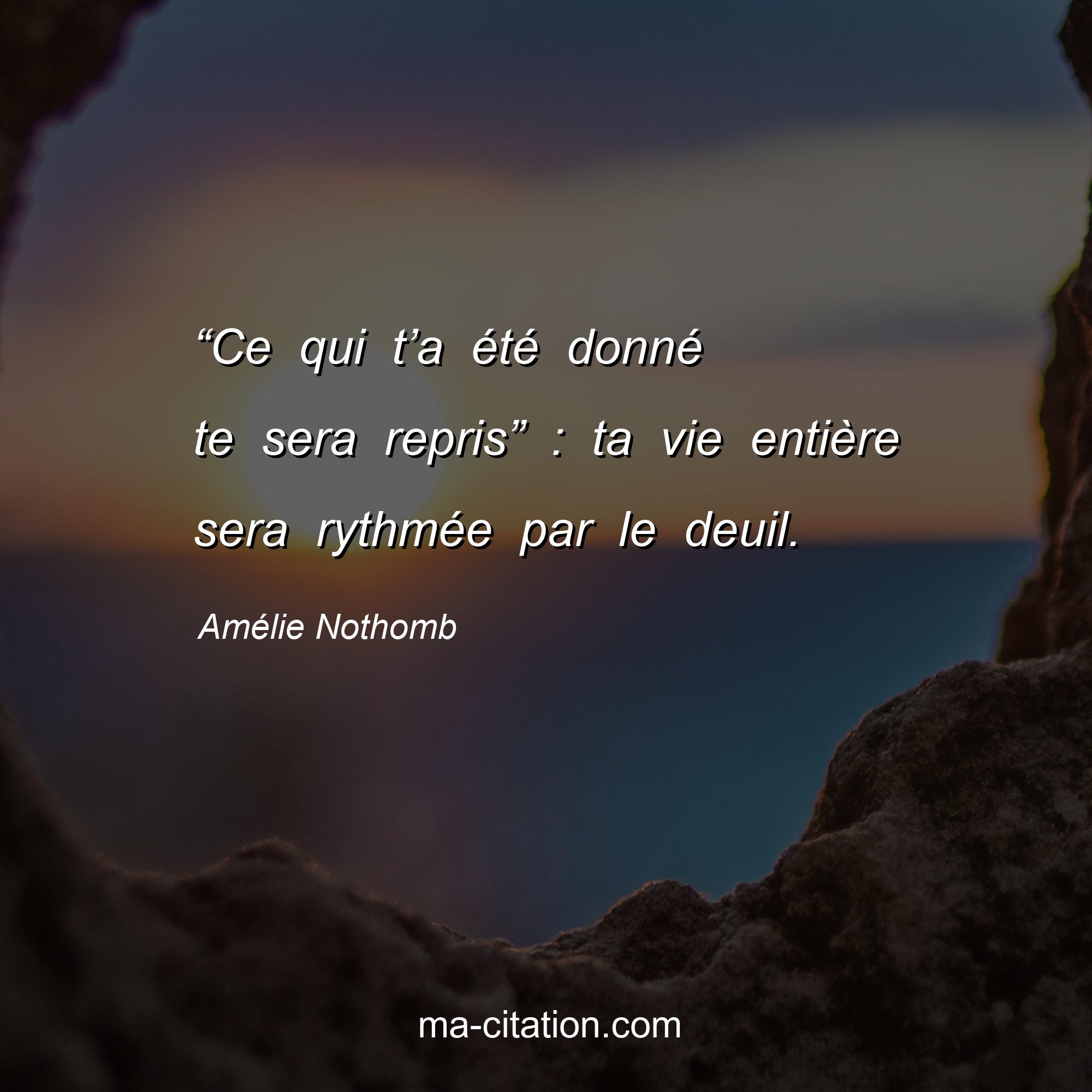 Citation sur la vie d'Amélie Nothomb :“Ce qui t’a été donné te sera repris†: ta vie entière sera rythmée par le deuil.