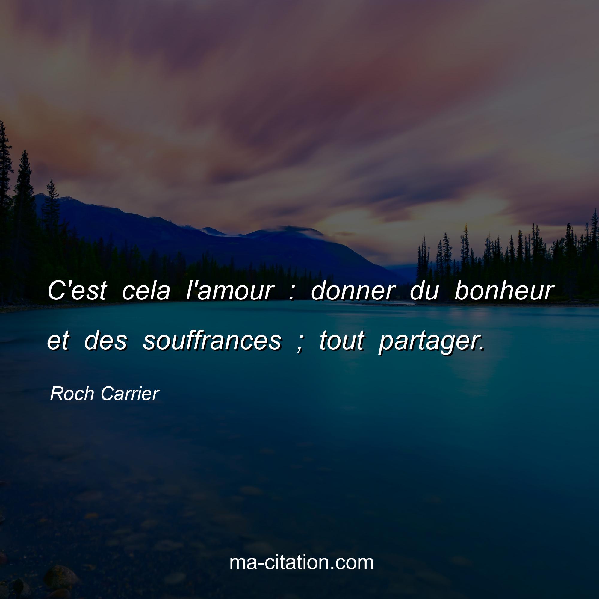 Citation sur la vie de Roch Carrier :C'est cela l'amour : donner du bonheur et des souffrances ; tout partager.