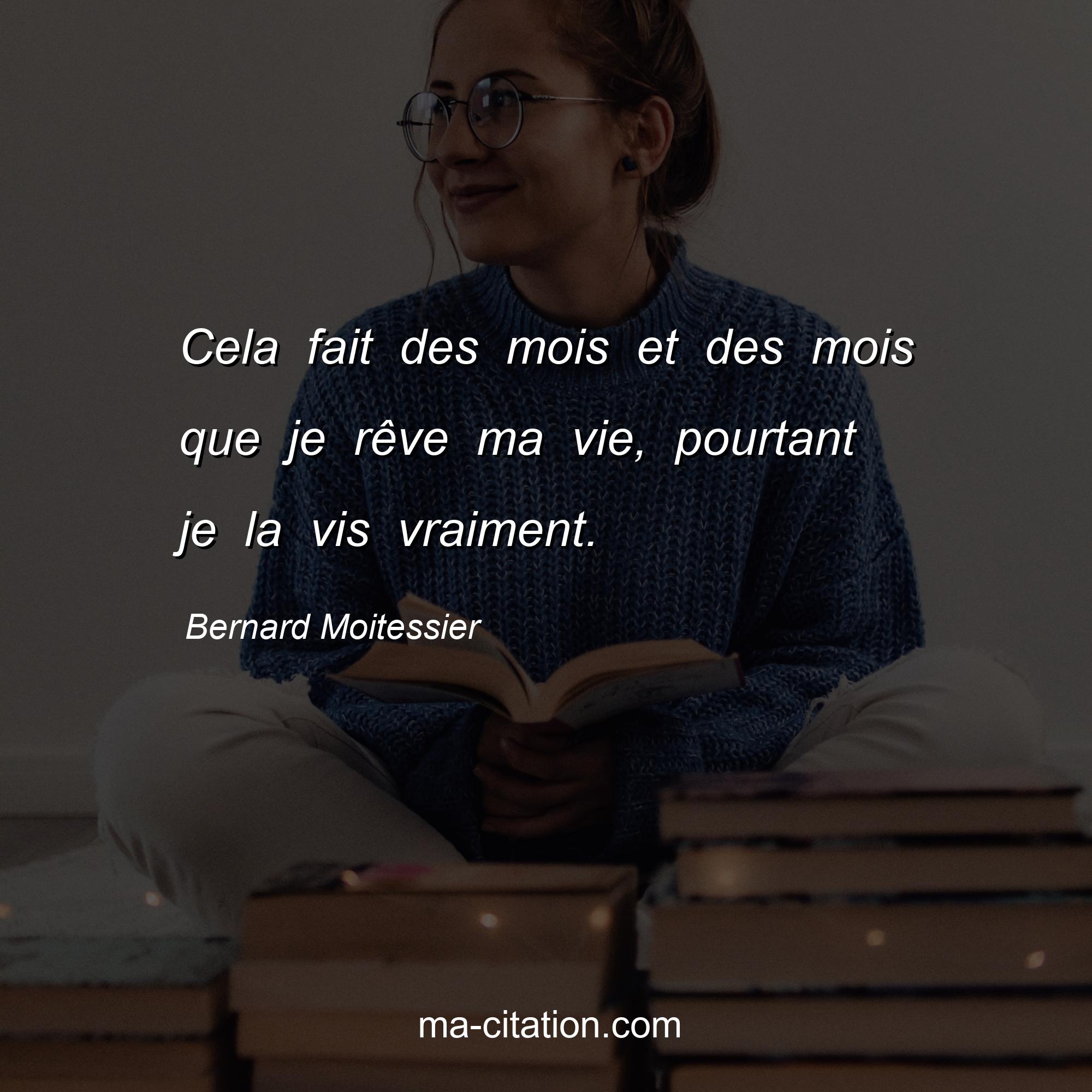 Bernard Moitessier est l'auteur de la citation sur la vie "Cela fait des mois et des mois que je rêve ma vie, pourtant je la vis vraiment.".