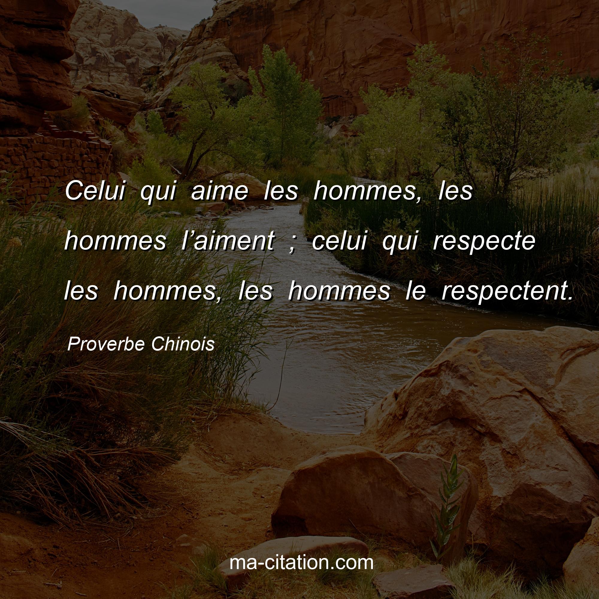Proverbe Chinois sur la vie :Celui qui aime les hommes, les hommes l’aiment ; celui qui respecte les hommes, les hommes le respectent.