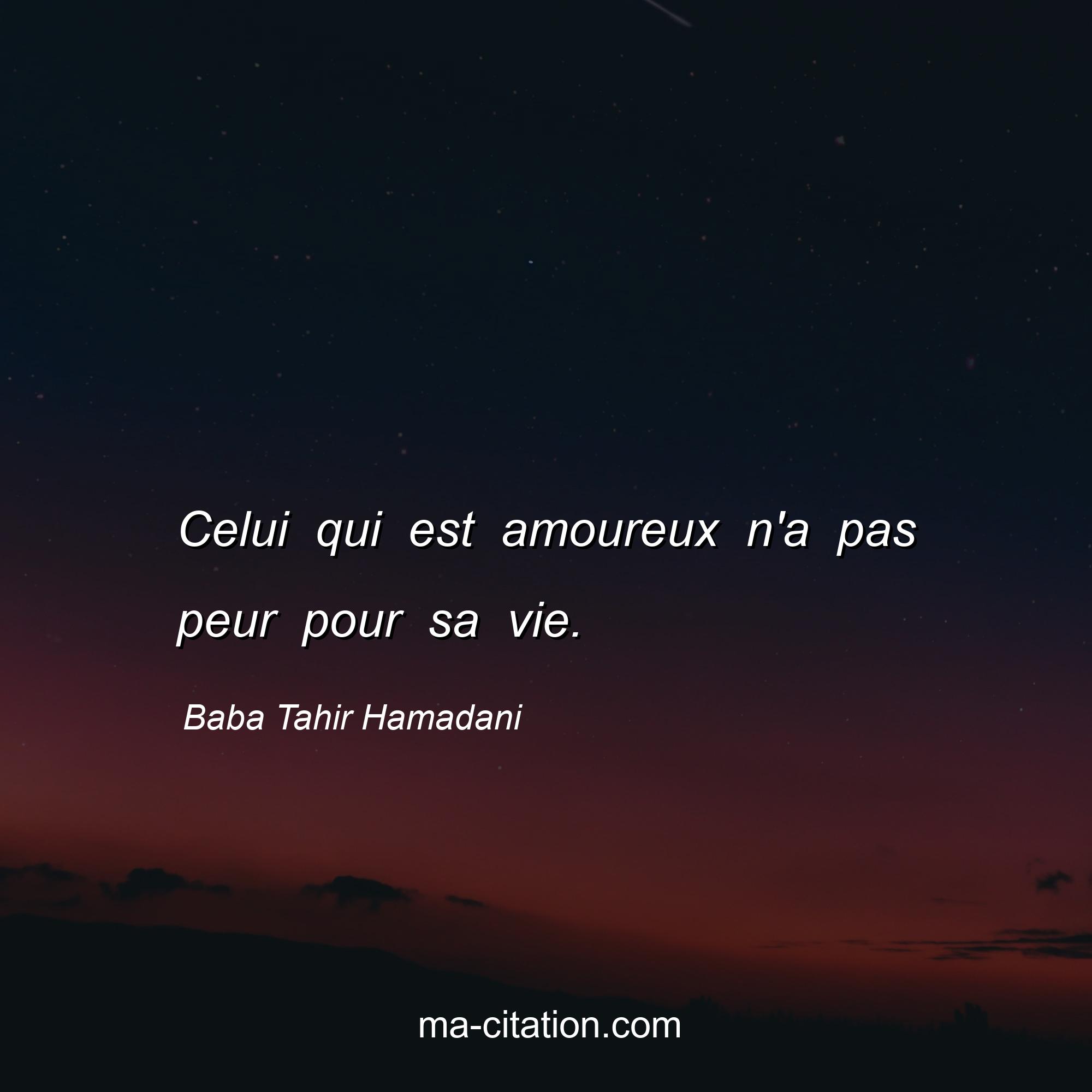 Citation sur la vie de Baba Tahir Hamadani :Celui qui est amoureux n'a pas peur pour sa vie.