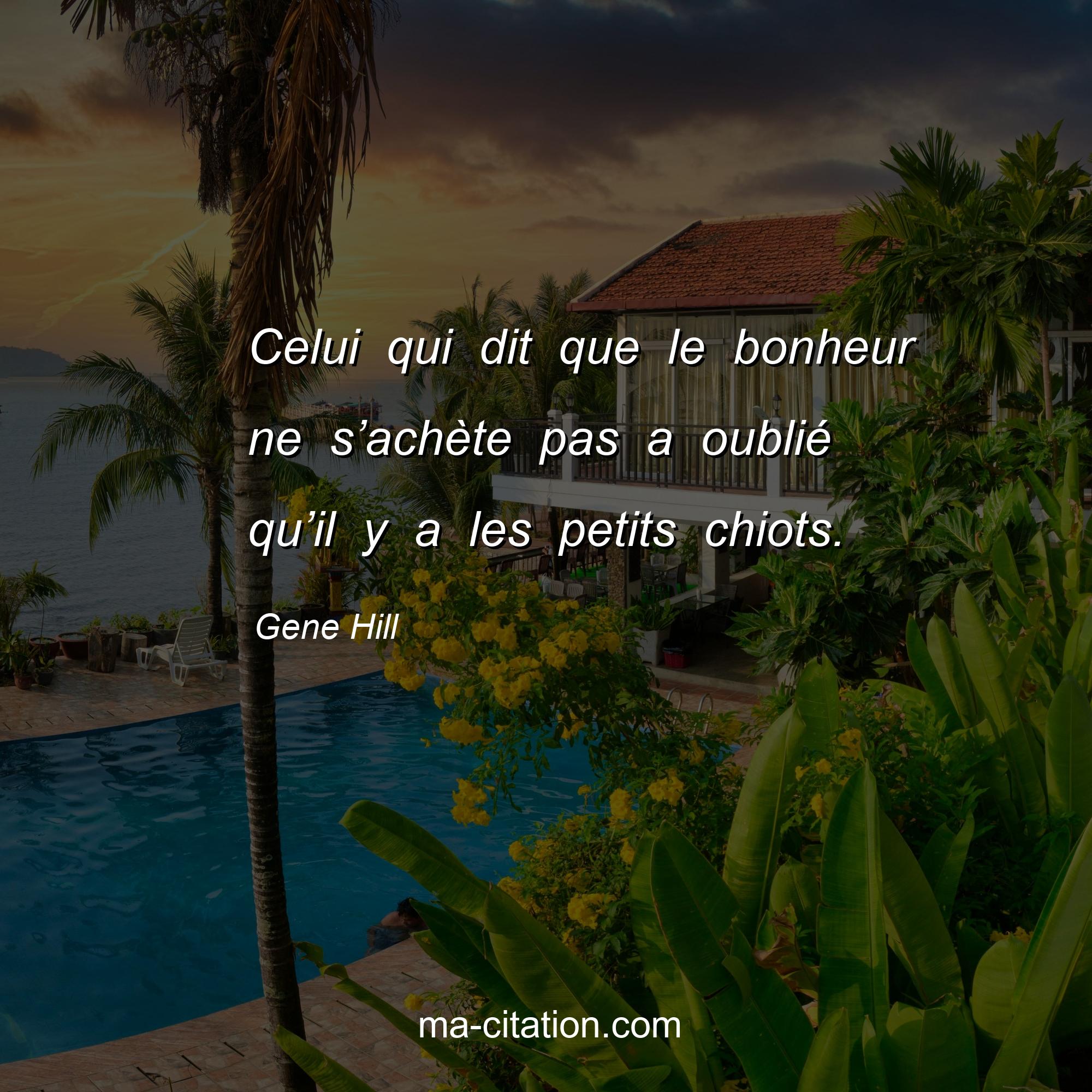 Gene Hill est l'auteur de la citation sur la vie "Celui qui dit que le bonheur ne s’achète pas a oublié qu’il y a les petits chiots.".