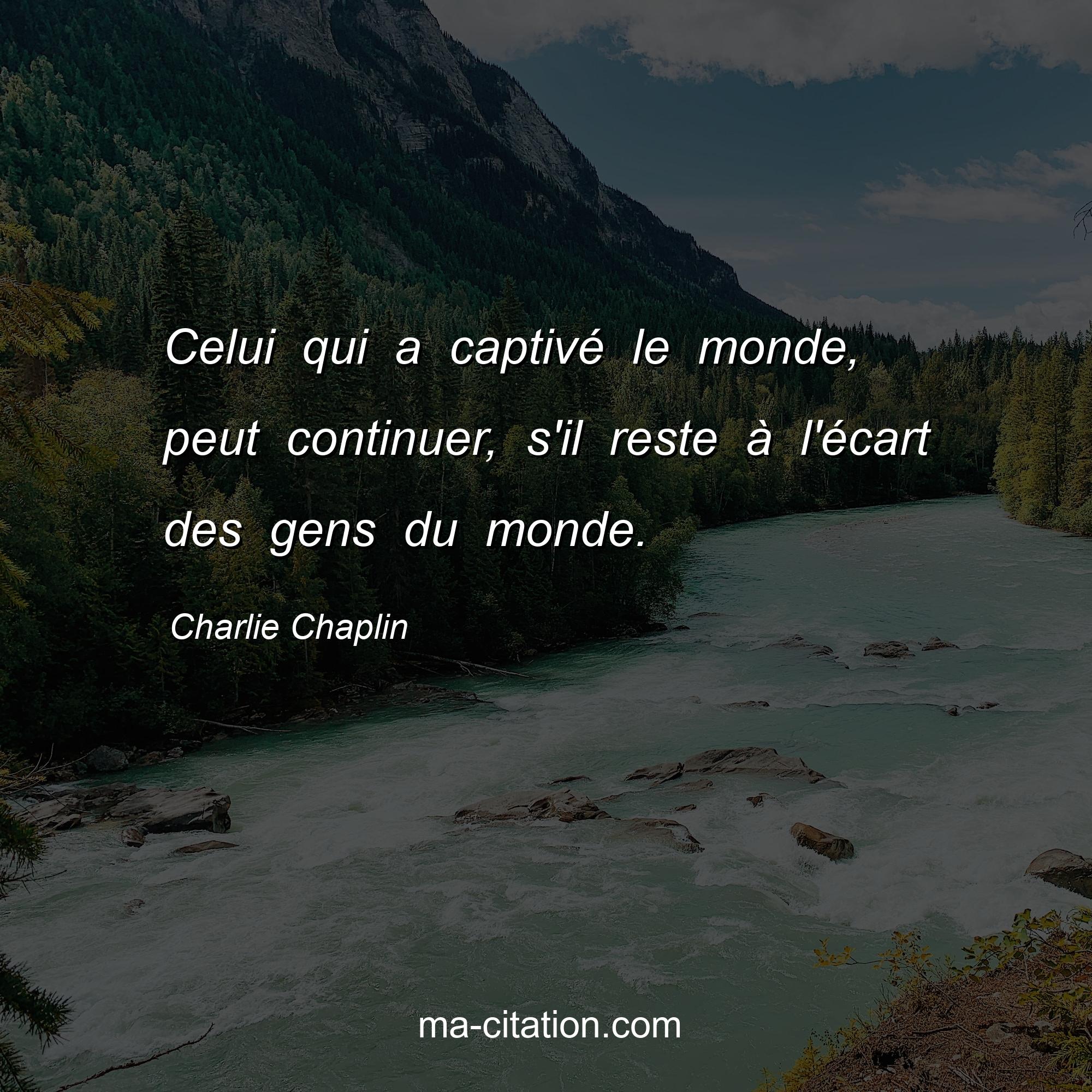 Citation sur la vie de Charlie Chaplin :Celui qui a captivé le monde, peut continuer, s'il reste à l'écart des gens du monde.