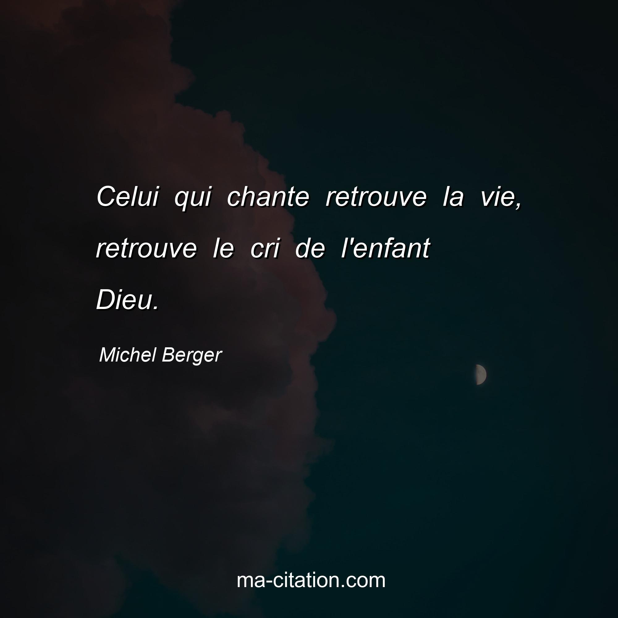 Citation sur la vie de Michel Berger :Celui qui chante retrouve la vie, retrouve le cri de l'enfant Dieu.