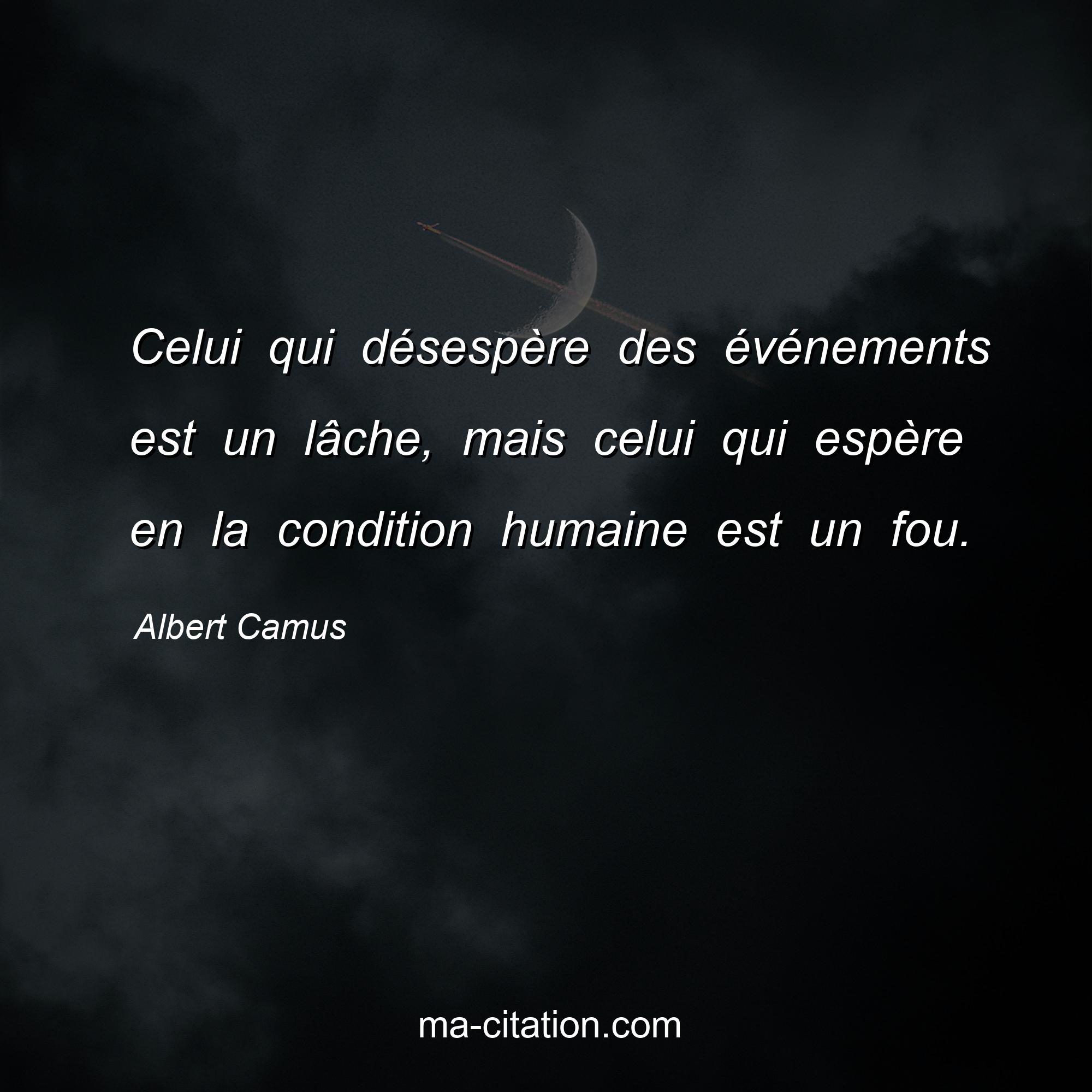 Citation sur la vie d'Albert Camus :Celui qui désespère des événements est un lâche, mais celui qui espère en la condition humaine est un fou.