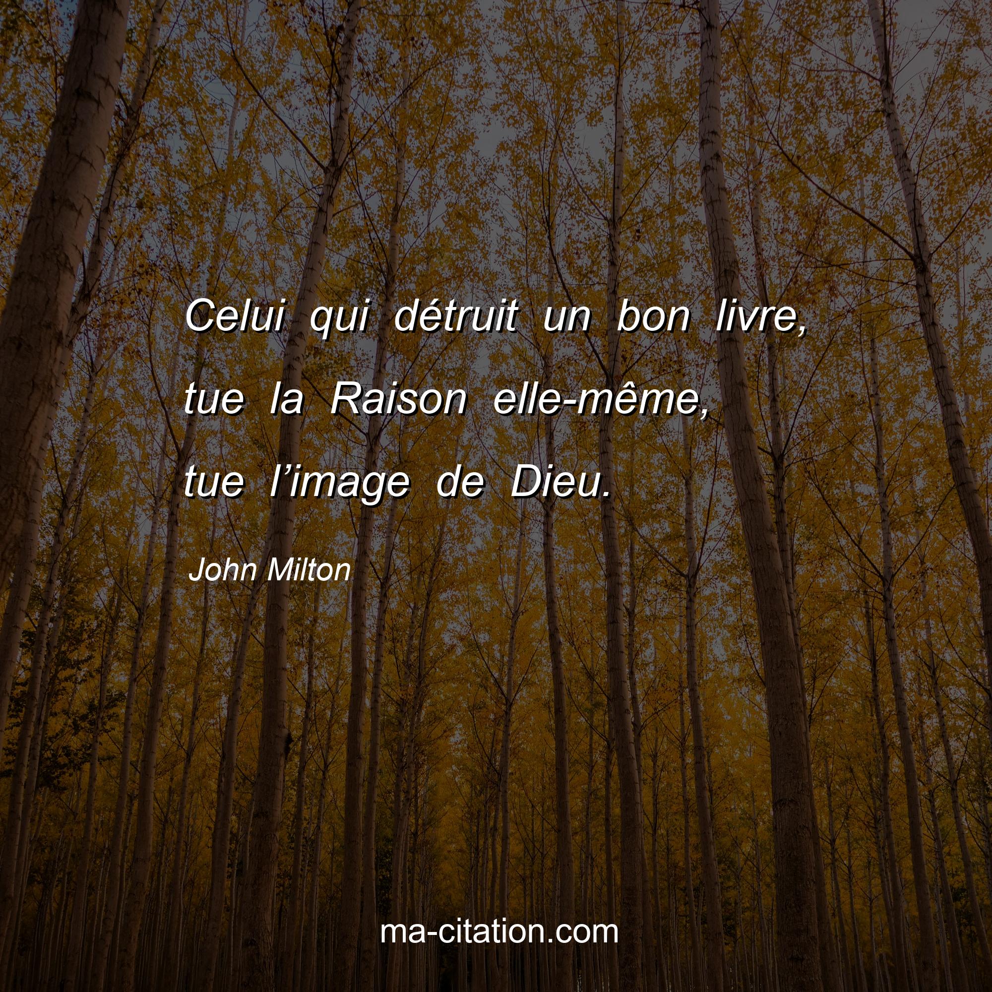 John Milton est l'auteur de la citation sur la vie "Celui qui détruit un bon livre, tue la Raison elle-même, tue l’image de Dieu.".