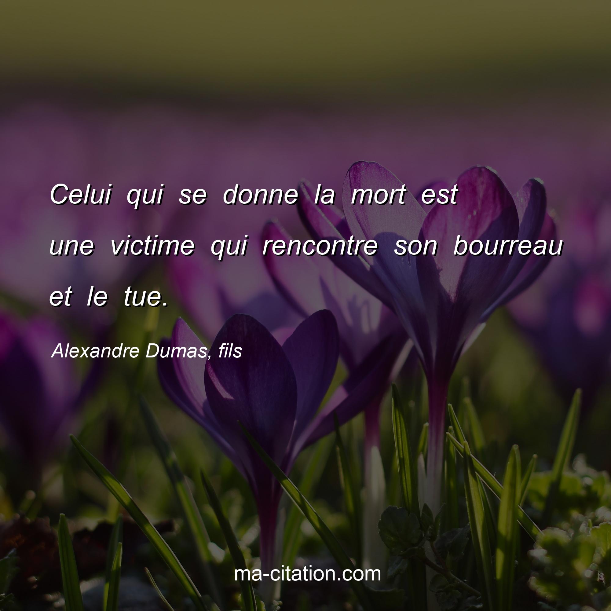 Alexandre Dumas, fils est l'auteur de la citation sur la vie "Celui qui se donne la mort est une victime qui rencontre son bourreau et le tue.".