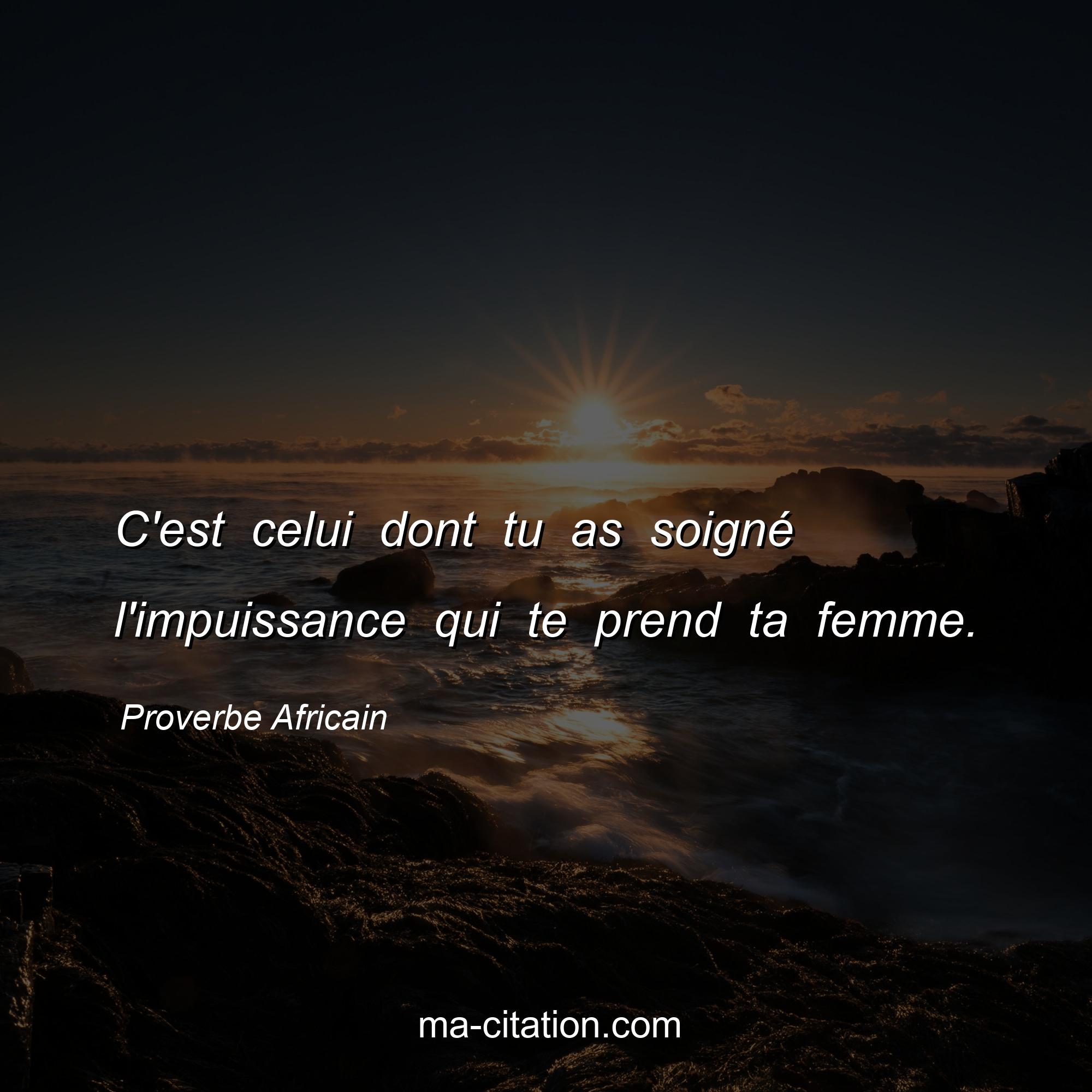 Proverbe Africain sur la vie :C'est celui dont tu as soigné l'impuissance qui te prend ta femme.