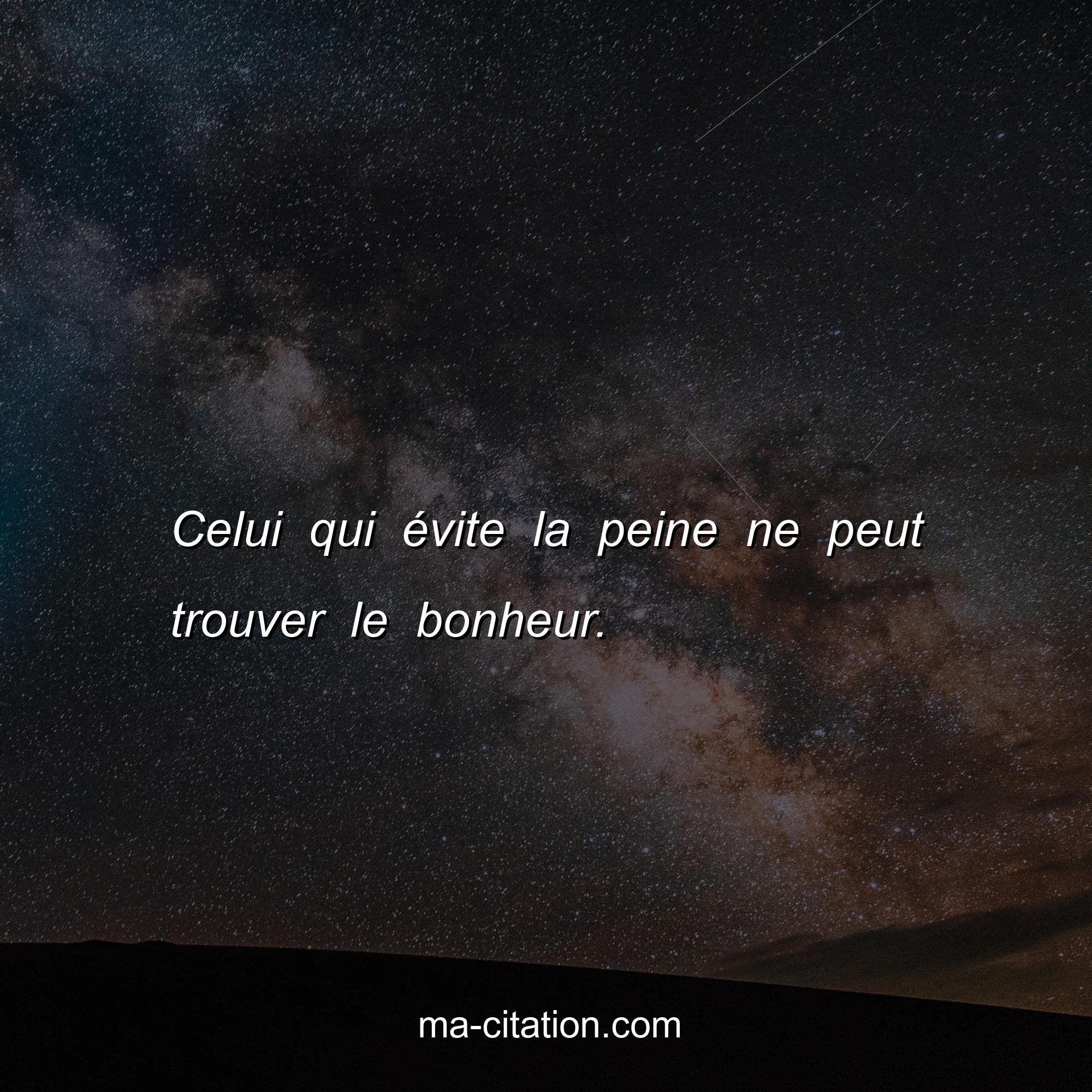 Citation sur la vie :Celui qui évite la peine ne peut trouver le bonheur.