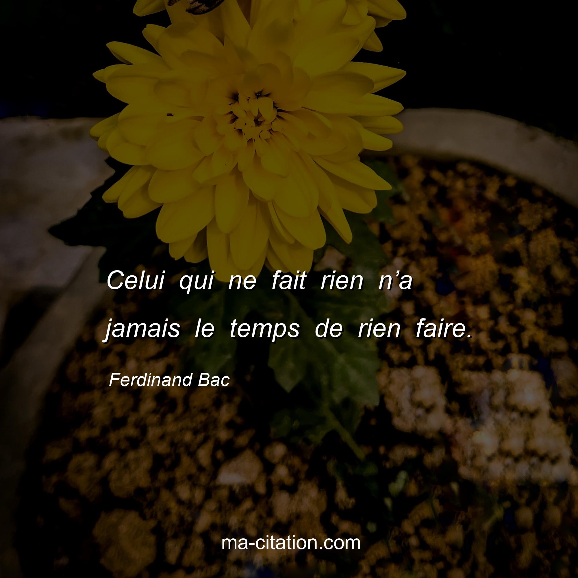 Citation sur la vie de Ferdinand Bac :Celui qui ne fait rien n’a jamais le temps de rien faire.