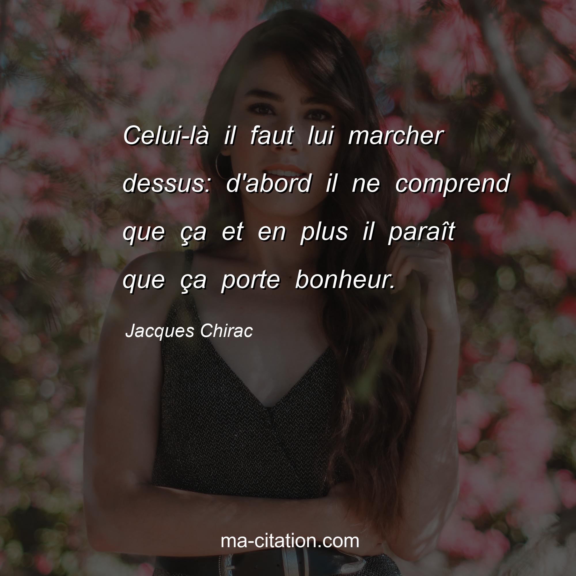 Citation sur la vie de Jacques Chirac :Celui-là il faut lui marcher dessus: d'abord il ne comprend que ça et en plus il paraît que ça porte bonheur.