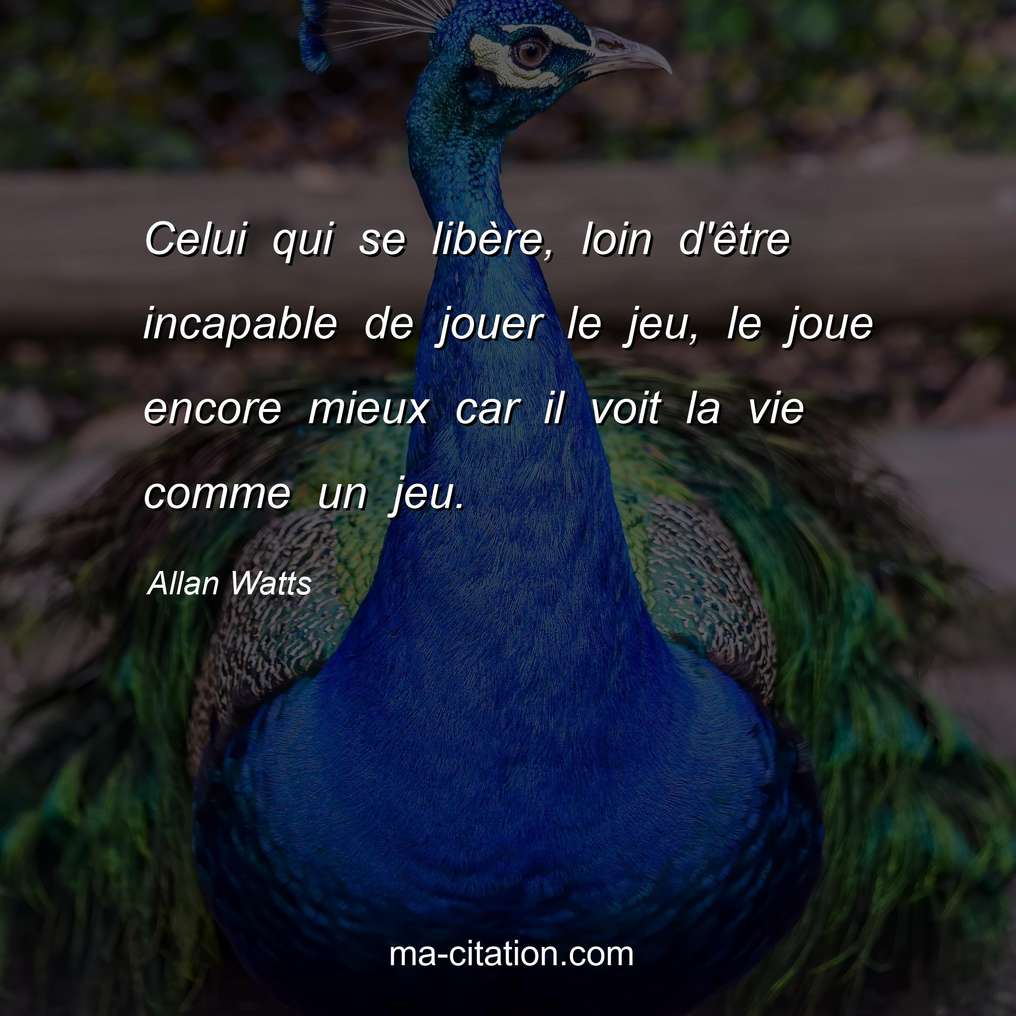 Allan Watts est l'auteur de la citation sur la vie "Celui qui se libère, loin d'être incapable de jouer le jeu, le joue encore mieux car il voit la vie comme un jeu.".