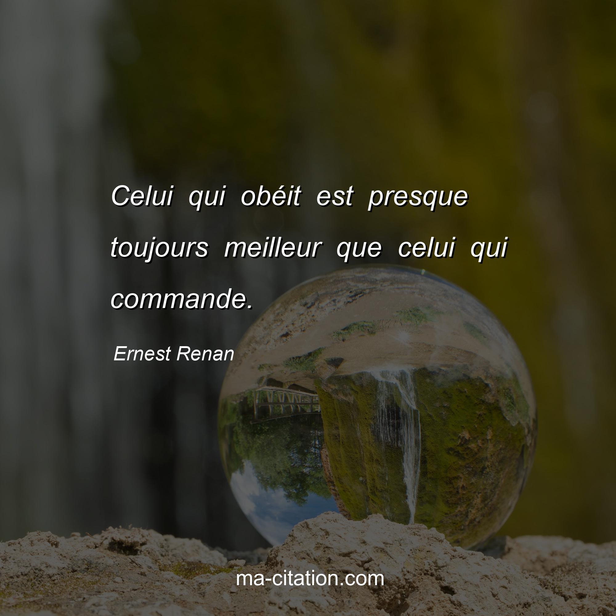 Citation sur la vie d'Ernest Renan :Celui qui obéit est presque toujours meilleur que celui qui commande.