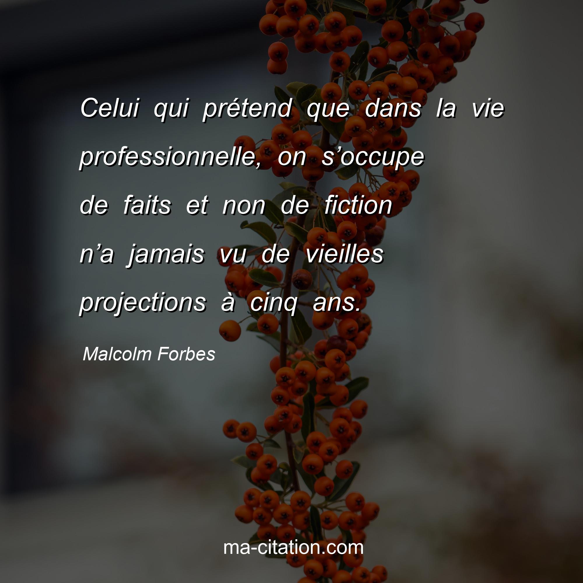 Citation sur la vie de Malcolm Forbes :Celui qui prétend que dans la vie professionnelle, on s’occupe de faits et non de fiction n’a jamais vu de vieilles projections à cinq ans.