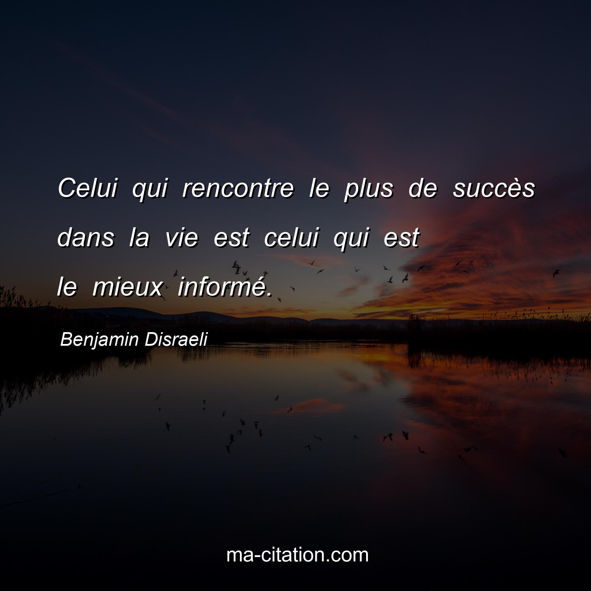 Benjamin Disraeli est l'auteur de la citation sur la vie "Celui qui rencontre le plus de succès dans la vie est celui qui est le mieux informé.".