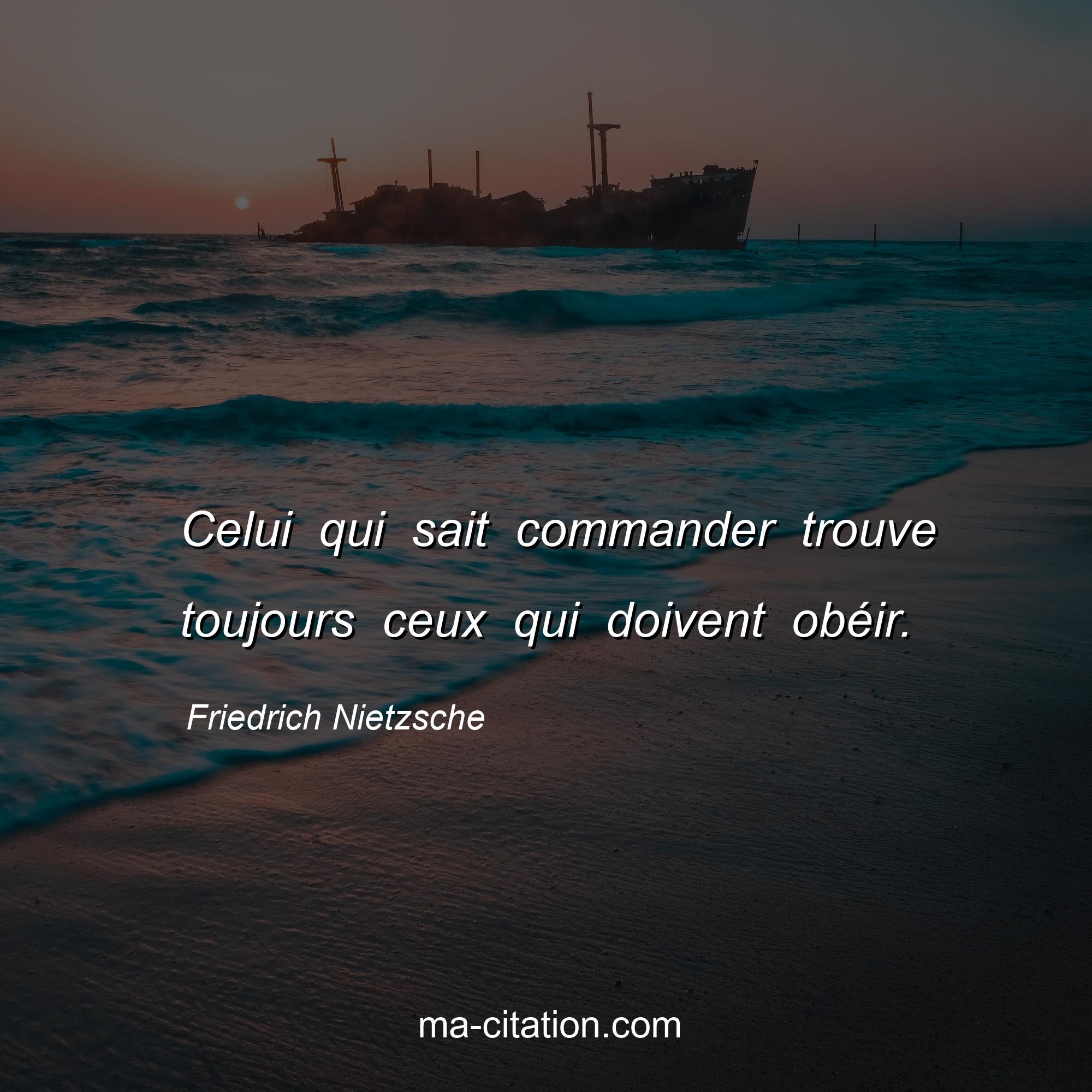 Citation sur la vie de Friedrich Nietzsche :Celui qui sait commander trouve toujours ceux qui doivent obéir.