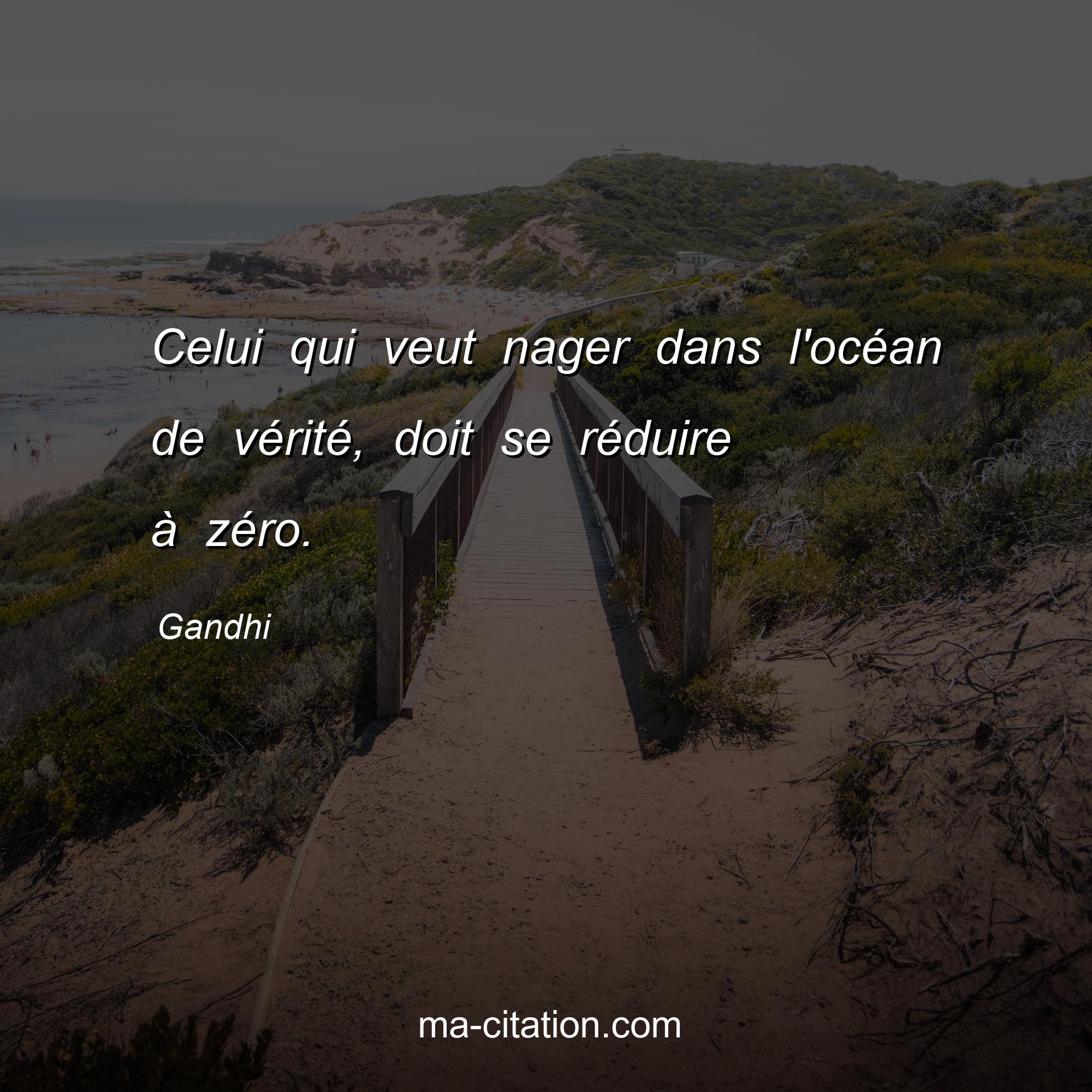 Gandhi est l'auteur de la citation sur la vie "Celui qui veut nager dans l'océan de vérité, doit se réduire à zéro.".