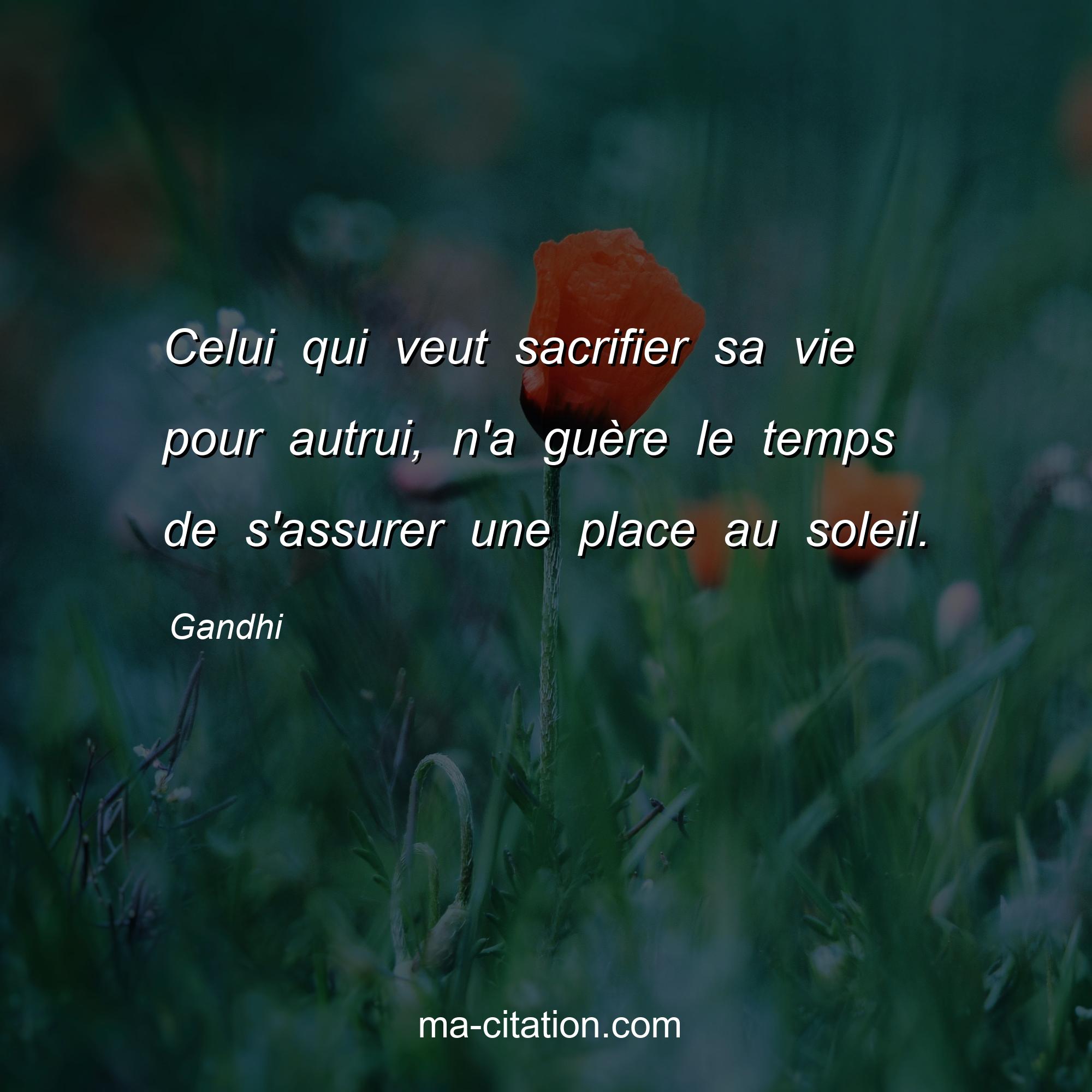 Gandhi est l'auteur de la citation sur la vie "Celui qui veut sacrifier sa vie pour autrui, n'a guère le temps de s'assurer une place au soleil.".
