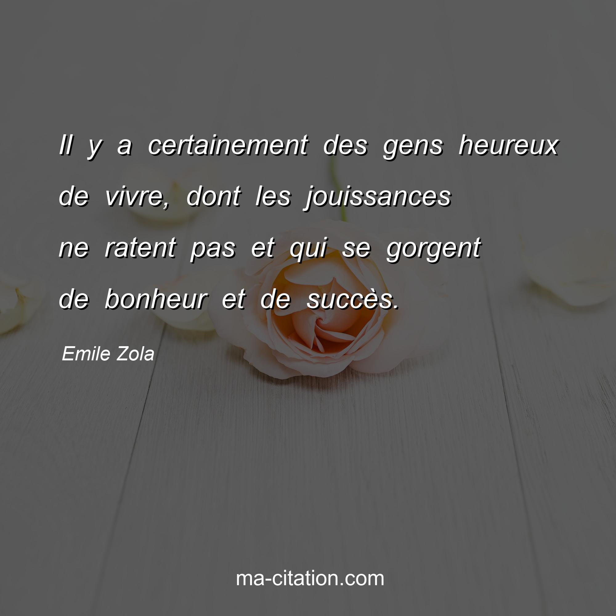 Citation sur la vie d'Emile Zola :Il y a certainement des gens heureux de vivre, dont les jouissances ne ratent pas et qui se gorgent de bonheur et de succès.
