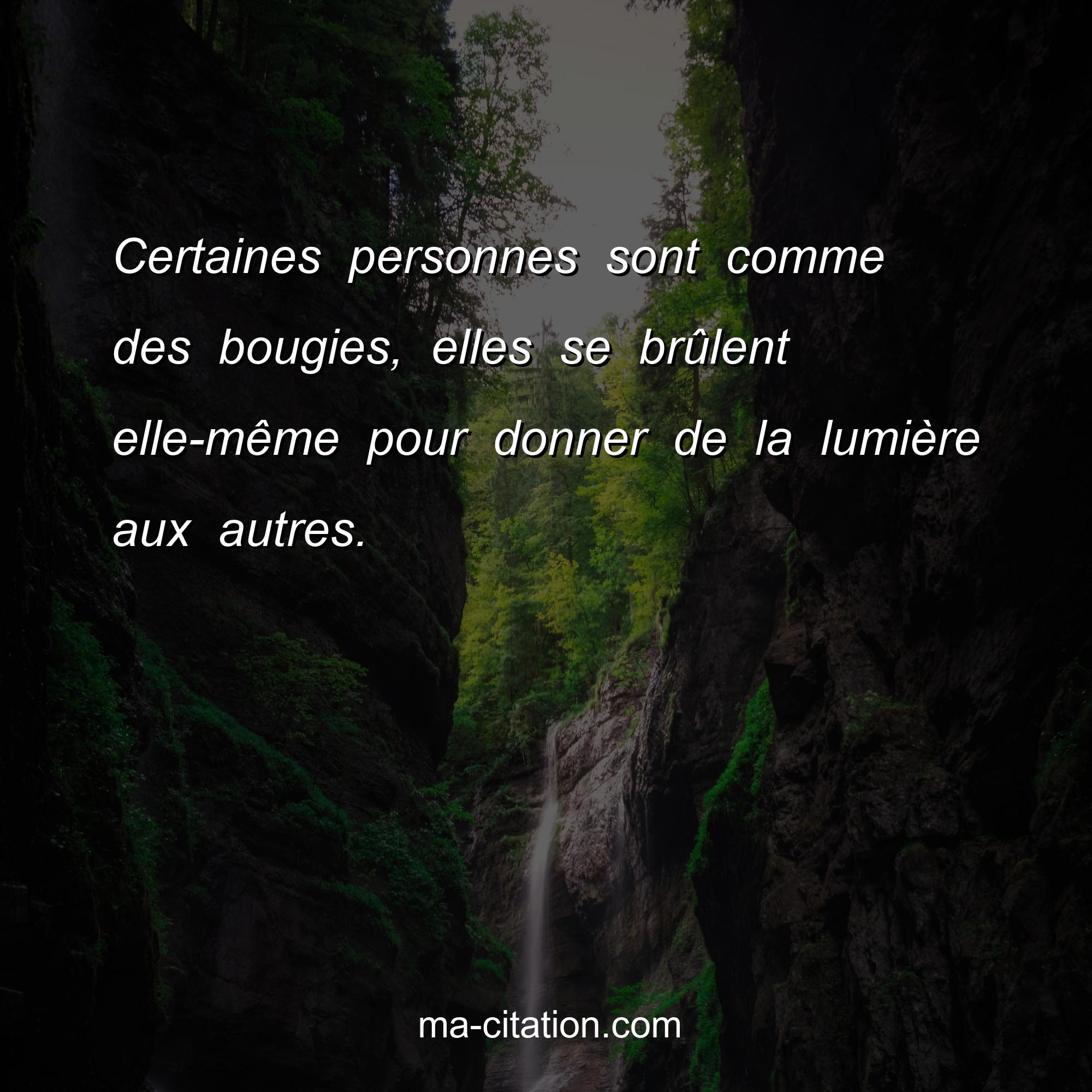 Certaines personnes sont comme des bougies, elles se brûlent elle-même pour donner de la lumière aux autres.