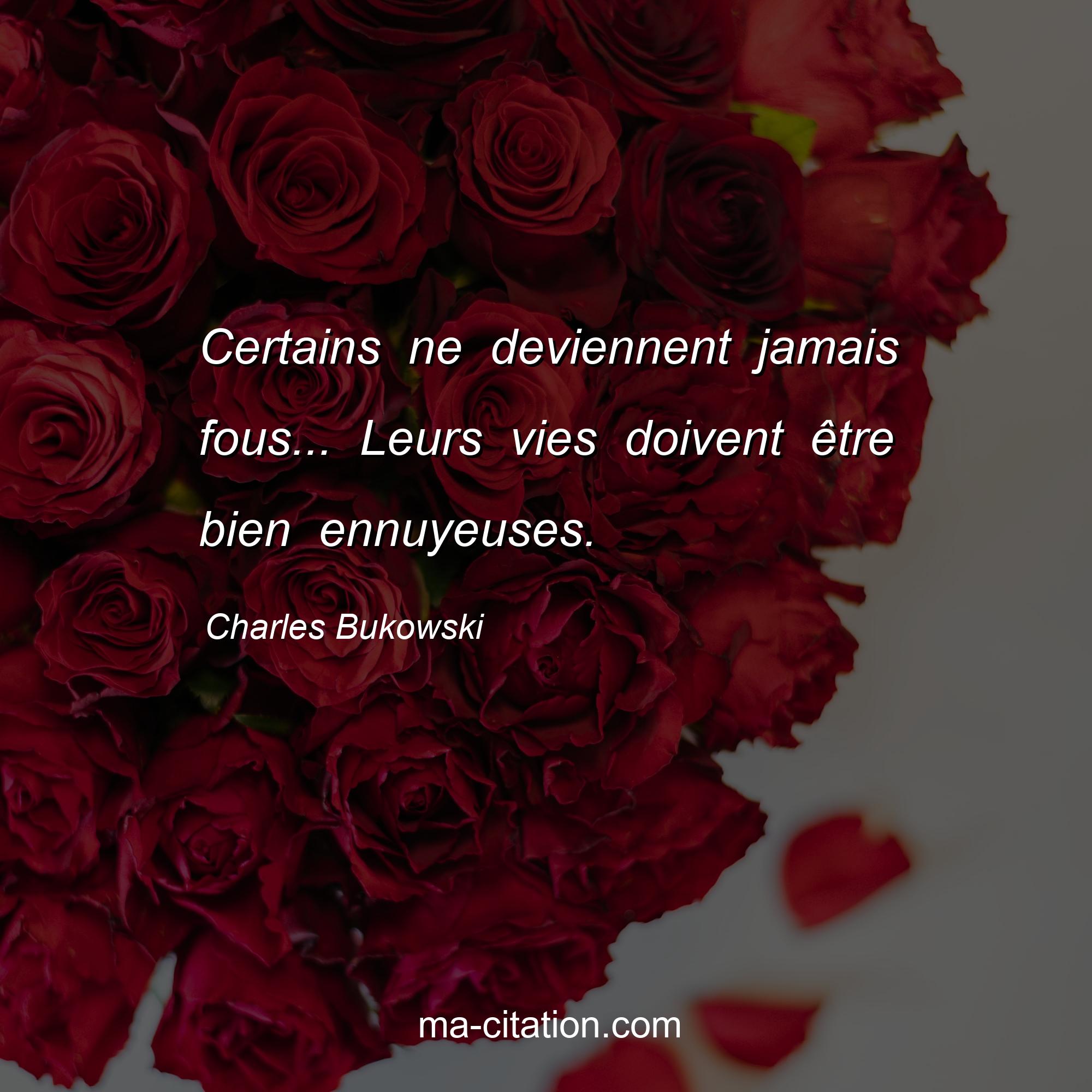 Citation sur la vie de Charles Bukowski :Certains ne deviennent jamais fous... Leurs vies doivent être bien ennuyeuses.