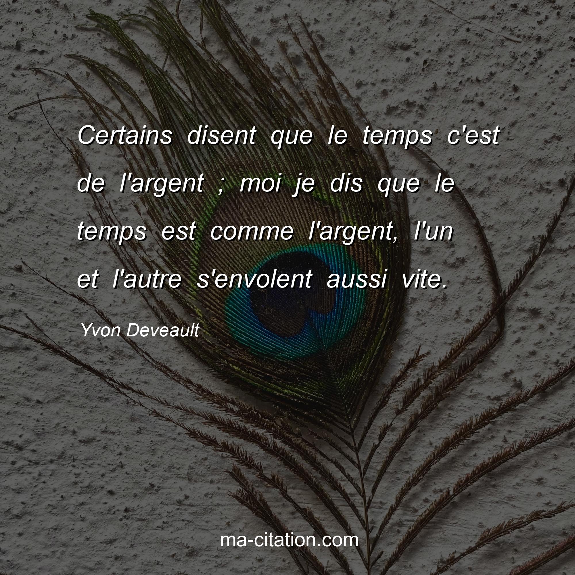 Citation sur la vie de Yvon Deveault :Certains disent que le temps c'est de l'argent ; moi je dis que le temps est comme l'argent, l'un et l'autre s'envolent aussi vite.