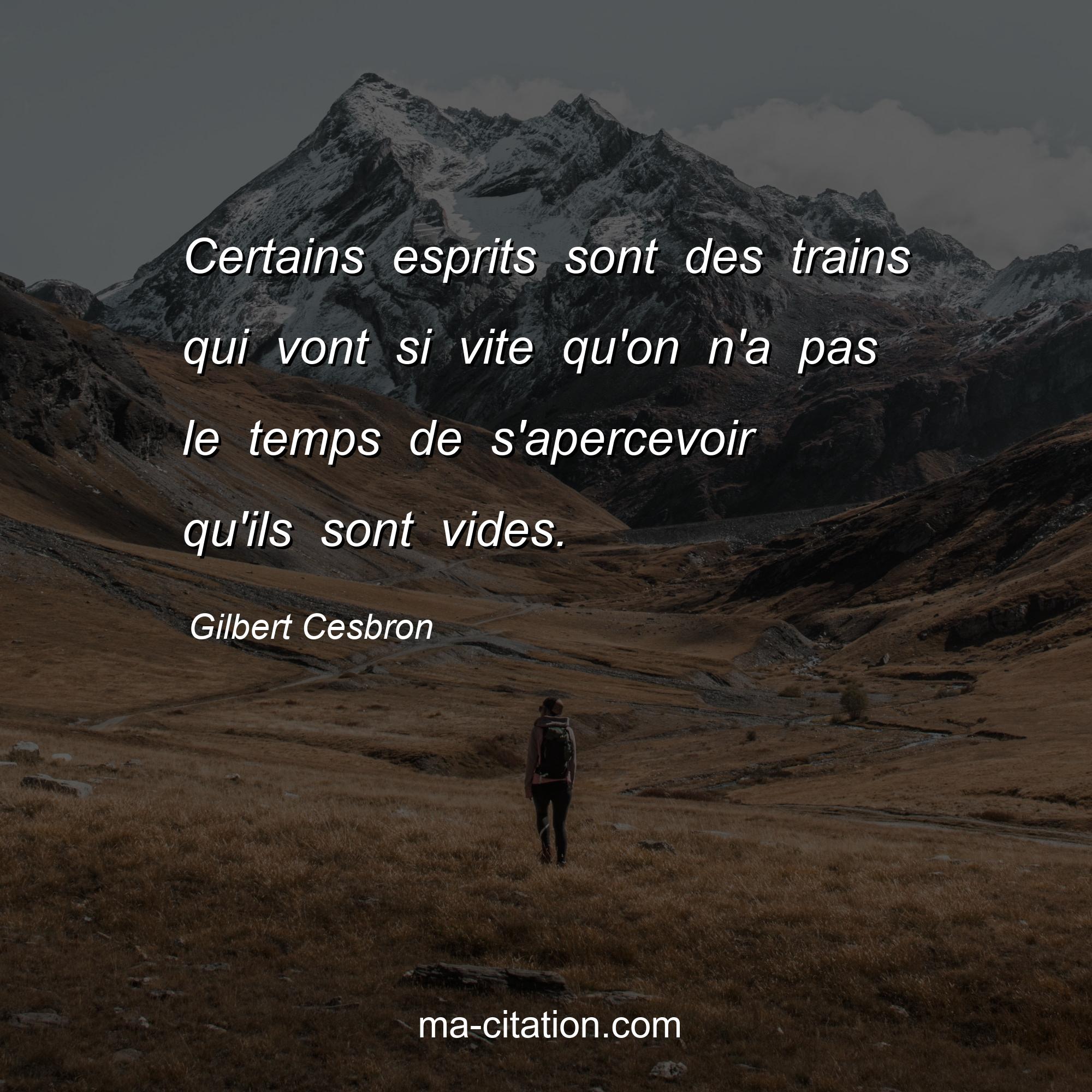 Citation sur la vie de Gilbert Cesbron :Certains esprits sont des trains qui vont si vite qu'on n'a pas le temps de s'apercevoir qu'ils sont vides.